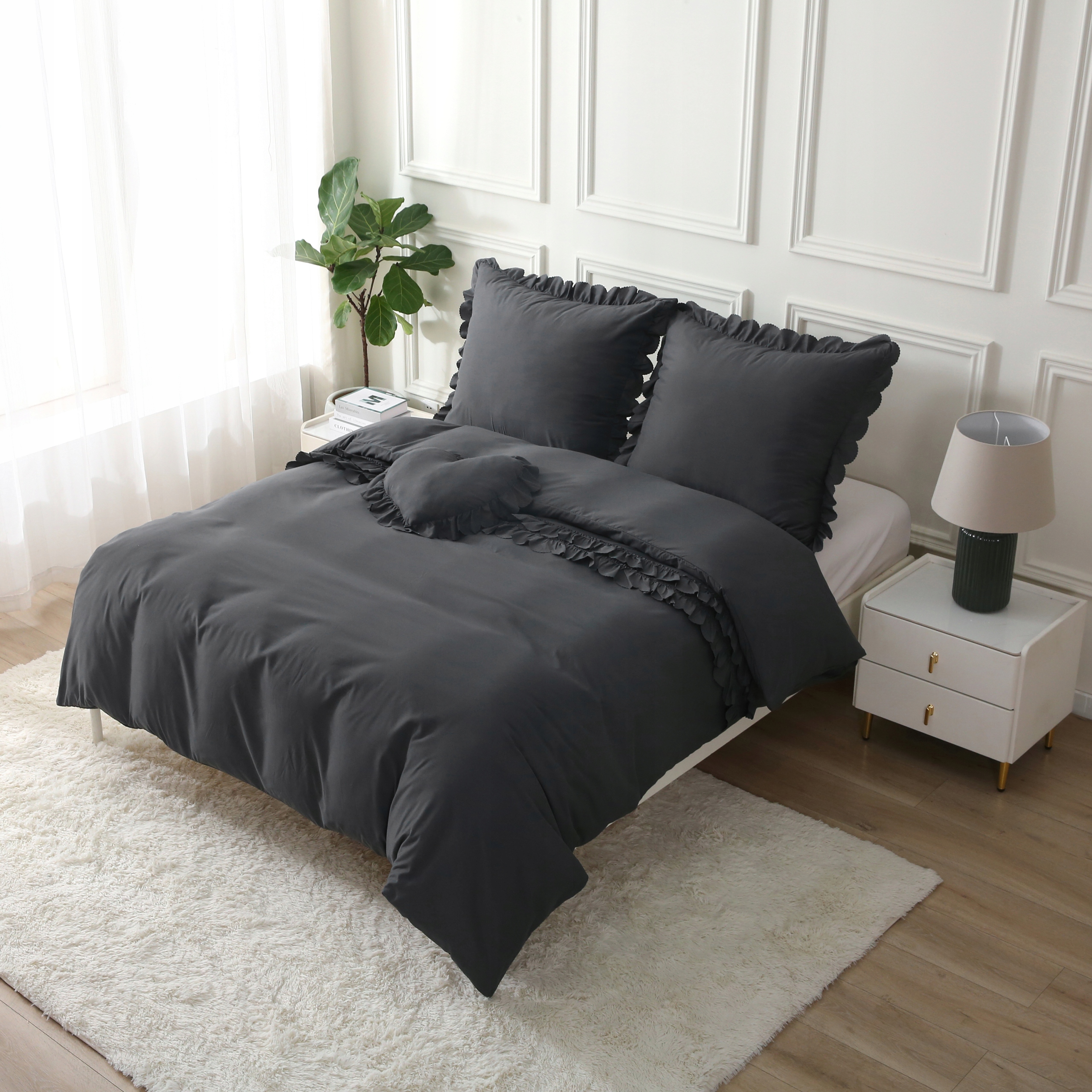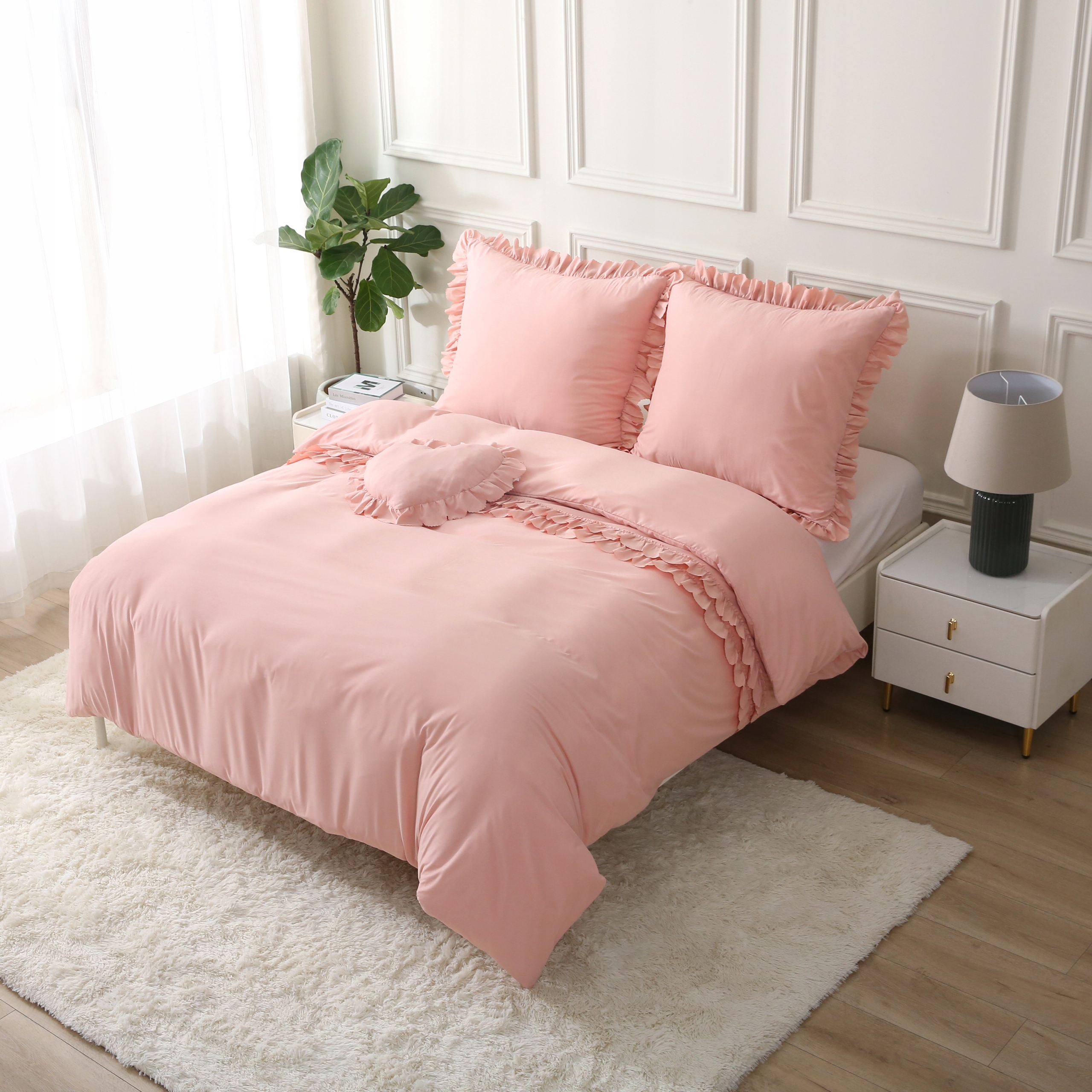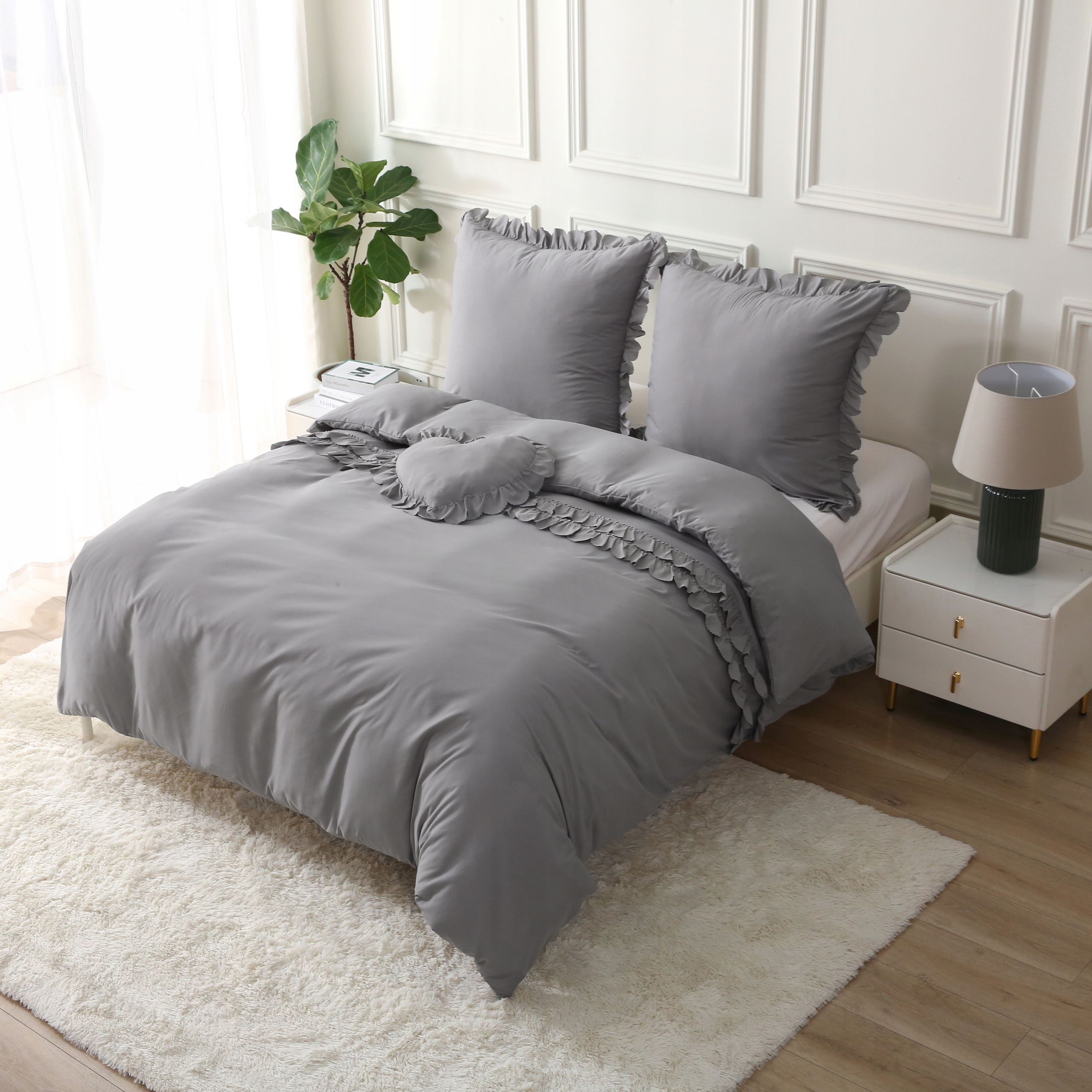 Комплект постільної білизни 160 см х 200 70 х 80 см постільна білизна з рюшами і подушка СЕРЦЕ