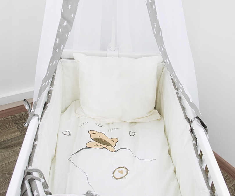 Комплект-люлька-качалка ALVI 80х80 Пододеяльник, Наволочка, Протектор, Балдахин - маленький бежевый мишка с узором 411555626