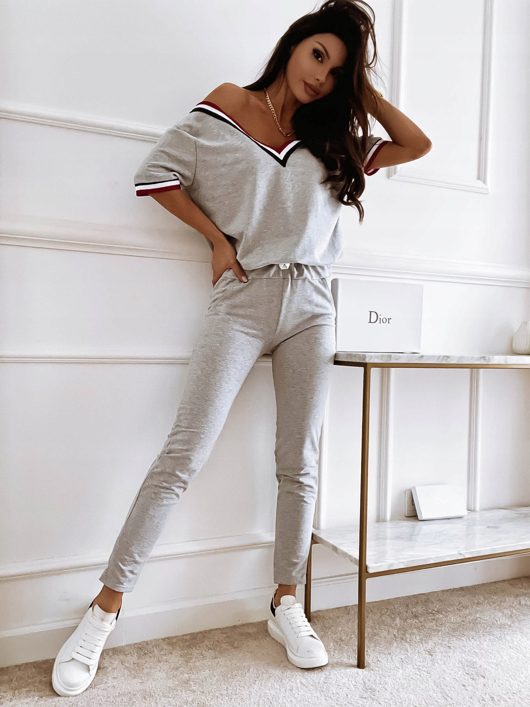 STYLE SWEAT SET V-образный вырез ЦВЕТА В РЕБИНКУ