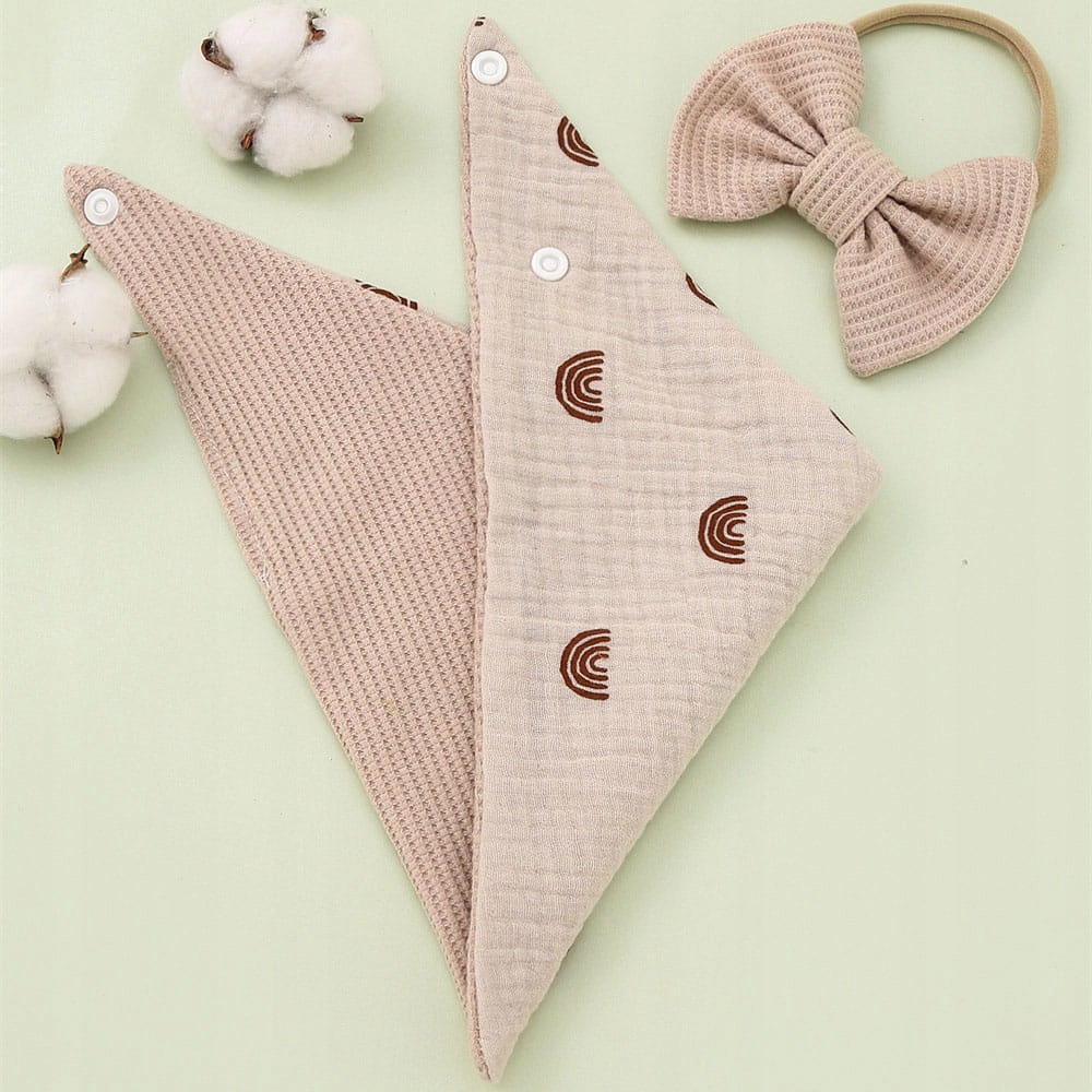 Повязки изготовлены из мягкого, приятного на ощупь хлопка. Резинка гибкая, мягкая, хорошо держится на голове ребенка, но не давит на нее.