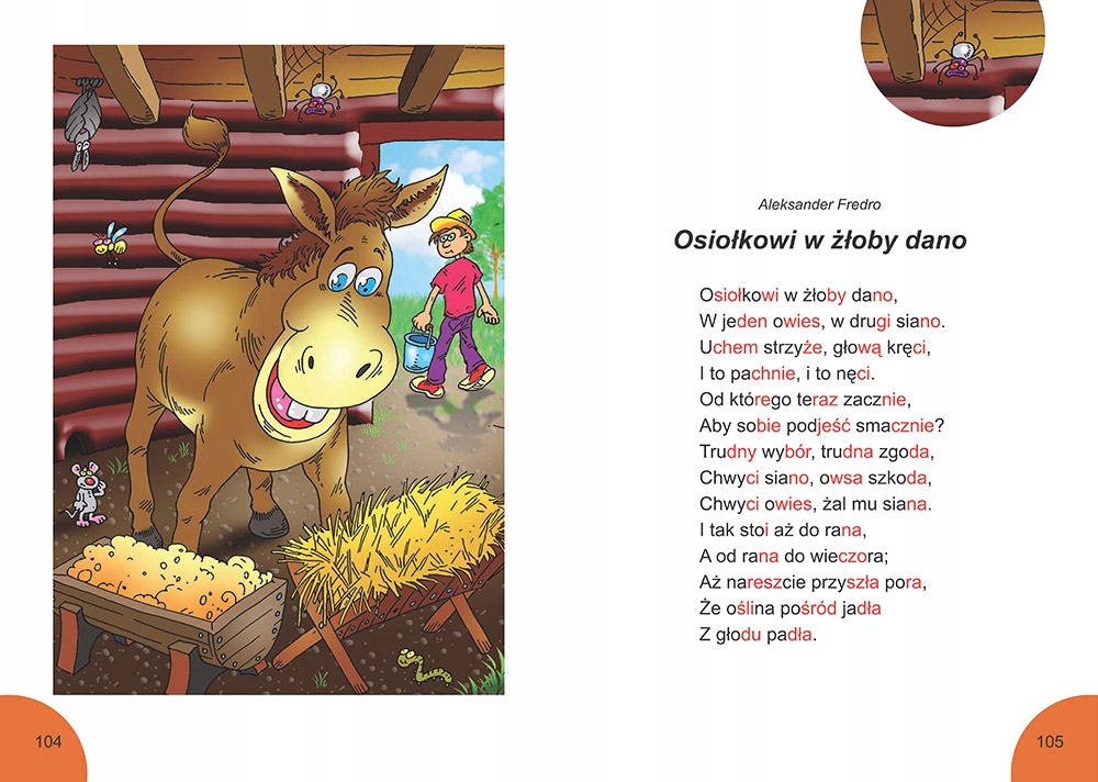 Она сразу бросилась в глаза, потому что содержит как более известные, так и менее известные сказки, которые нужно читать слоговым методом. В нем больше страниц, потому что в нем больше иллюстраций и пятьдесят рифмованных сказок таких авторов, как Александр Фредро, Адам Мицкевич, Мария Конопницкая и некоторых других...