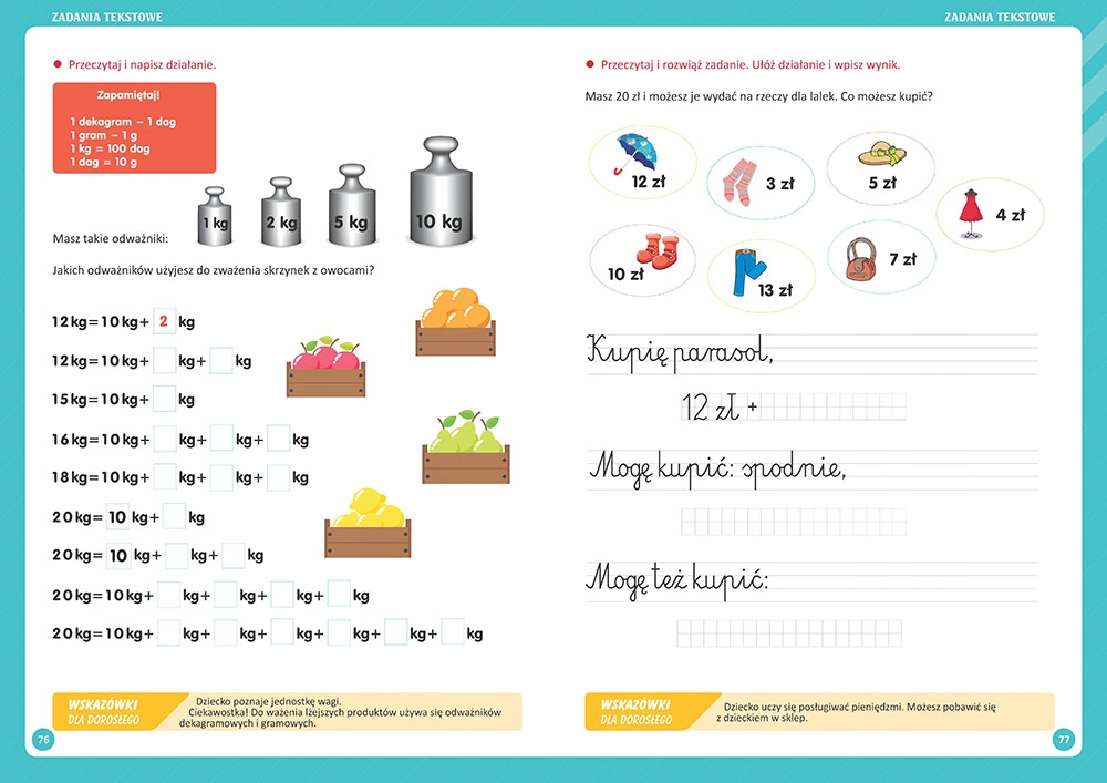 Букварь содержит раздел математики. Все соответствует основной программе. Ребенок знакомится с математическим миром постепенно, медленно и очень интересно. Здесь множество упражнений, заданий и советов для родителей (...) Направление, в котором мы пишем, отмечено рядом с цифрами, а также цифрами, обозначающими порядок. Это отличная идея и очень хорошее подспорье для ребенка. Инструкции даны четко и конкретно. Ребенок получает задания с красочными картинками в очень привлекательной форме.