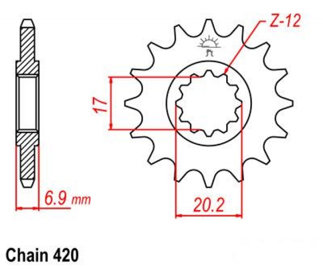 Передняя звездочка JTF1120.12, 12 зубьев.