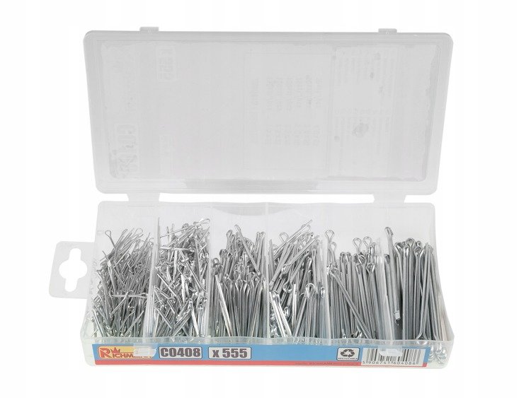 Предметом предложения является набор прямых булавок от компании Richmann (ранее Corona). Прямые шплинты состоят из проушины и двух концов, благодаря чему они позволяют создать подходящую сцепку на размещенных деталях, например, на валах, осях, пальцах, шпинделях.