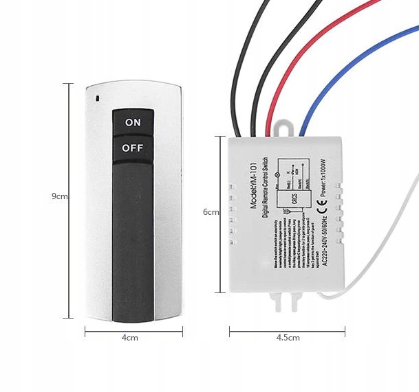 На рисунке ниже показаны размеры пульта дистанционного управления и приемника в корпусе, позволяющем установить его в незаметном месте.