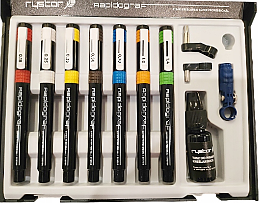 - Рапидограф – профессиональный инструмент, позволяющий рисовать тушью линии постоянной толщины.
