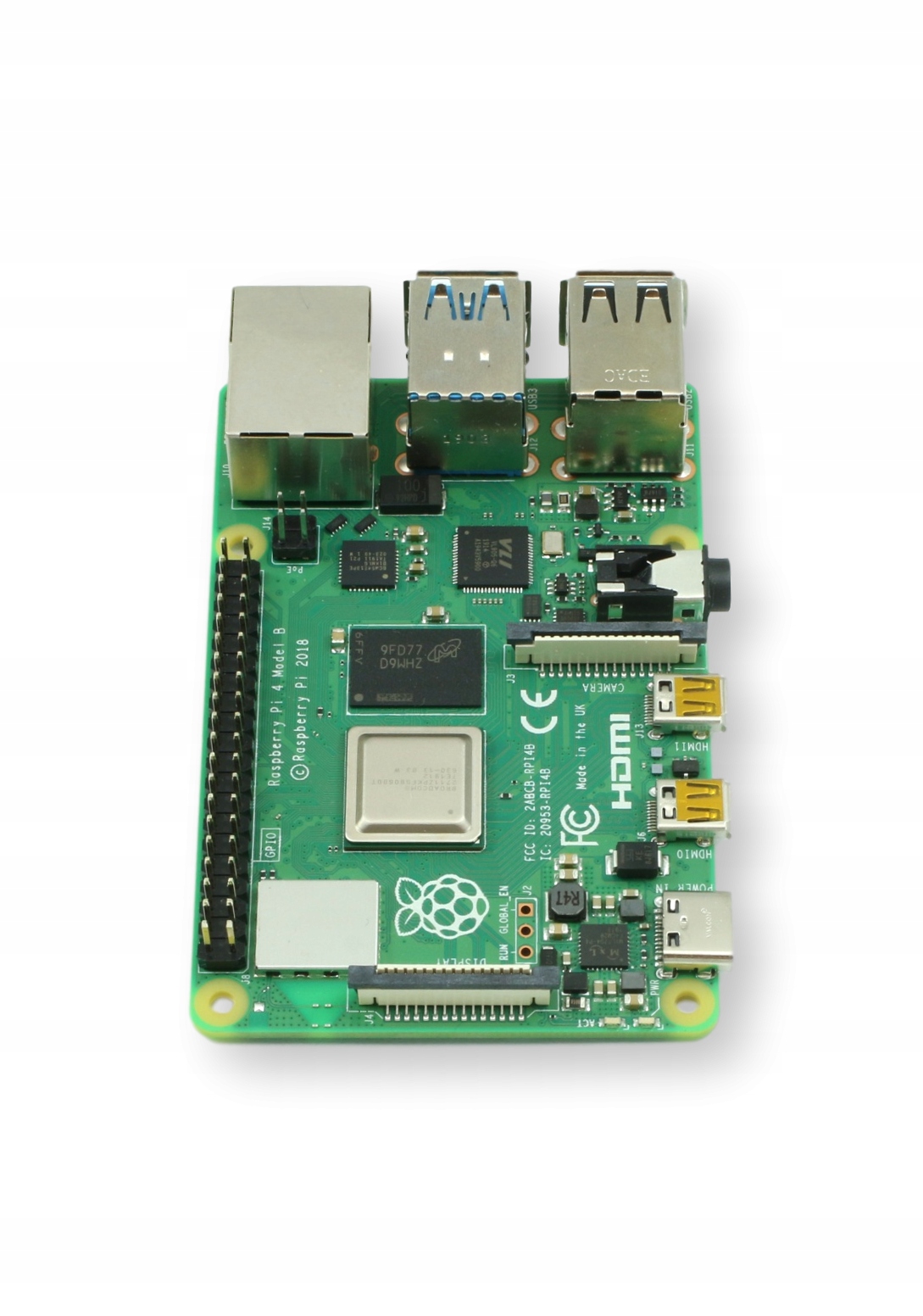 Raspberry Pi 4 Model B оснащен 64-битным четырехъядерным процессором. базовый процессор с тактовой частотой 1,5 ГГц, позволяет подключать два монитора в разрешении до 4К с частотой 60 кадров/сек, имеет 4 ГБ ОЗУ, двухдиапазонный модуль WLAN 2,4/5,0 ГГц, Bluetooth 5.0 /BLE, порты Gigabit Ethernet, USB 3.0 и возможности покрытия PoE (через отдельную надстройку PoE HAT).