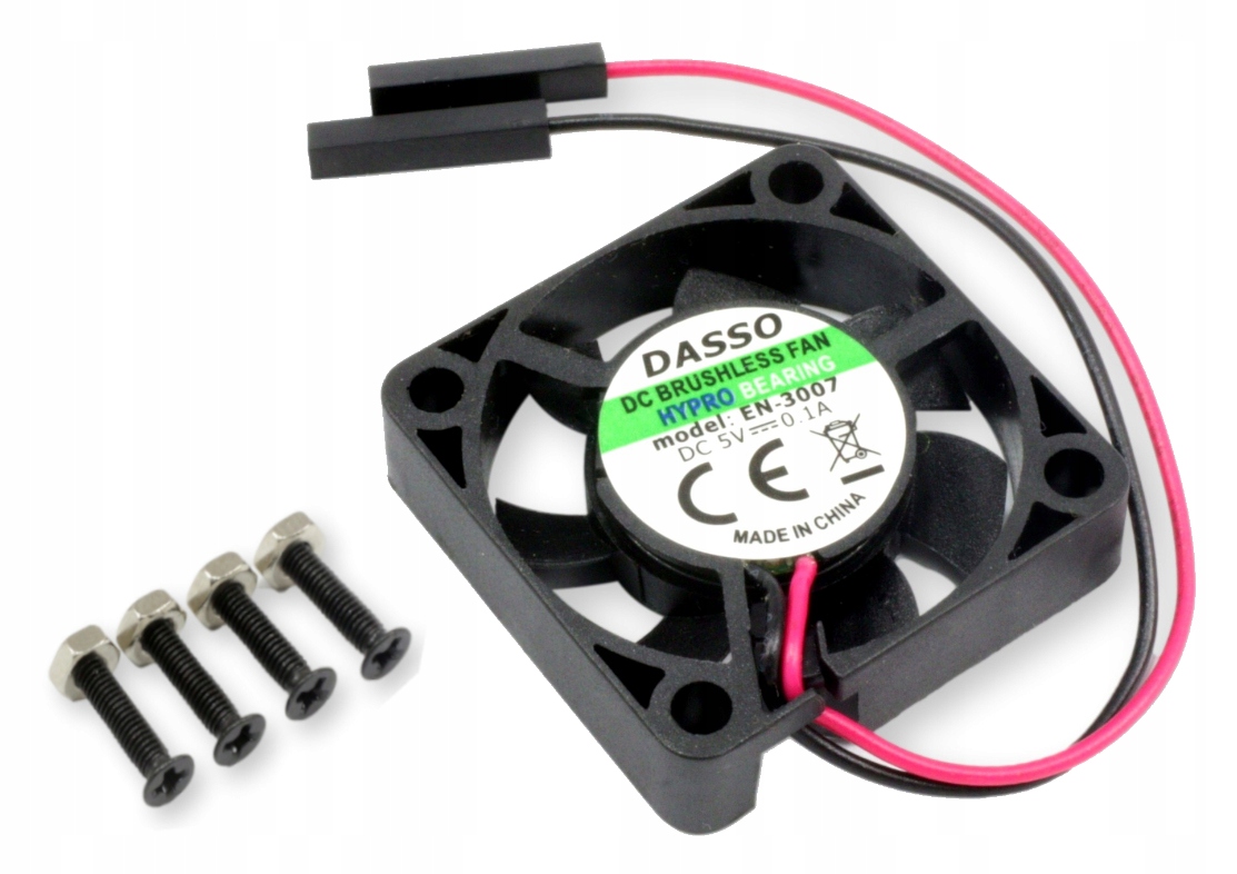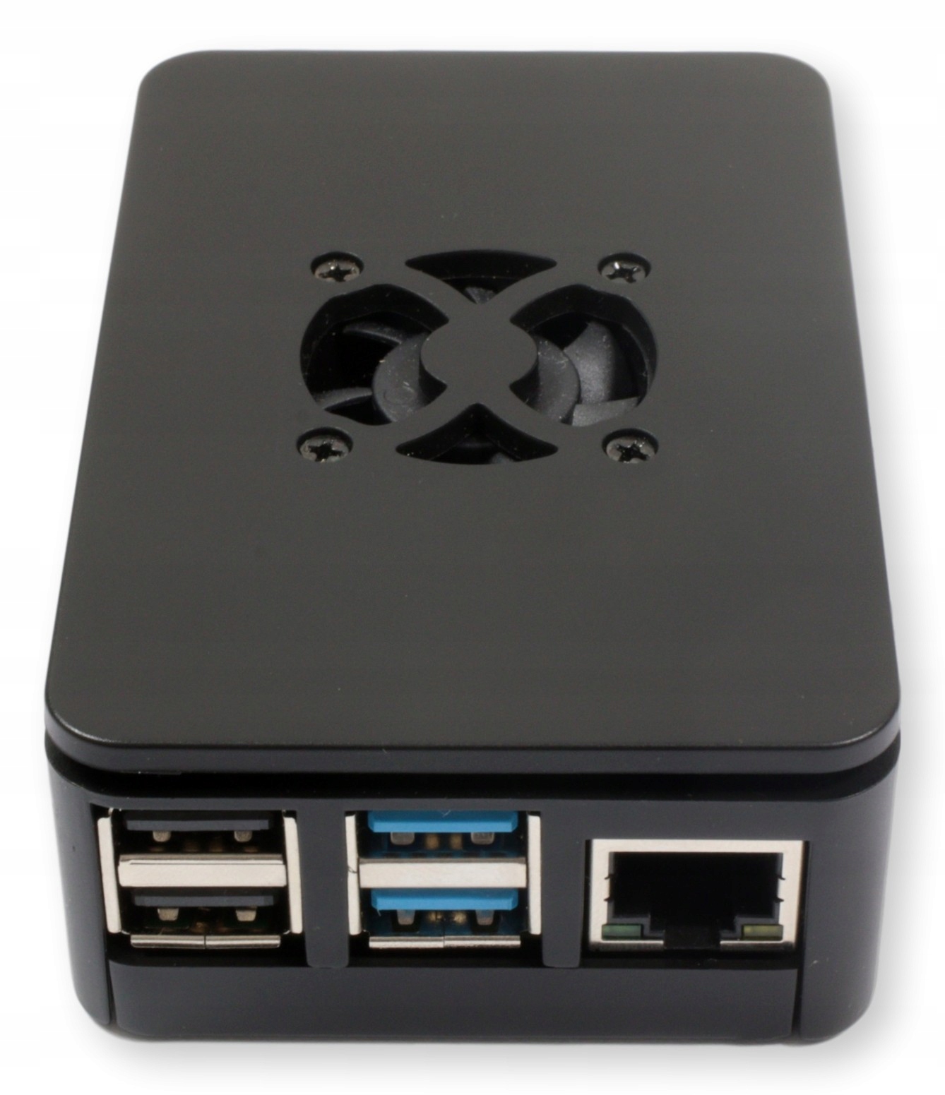 В комплект входит специальный вентилятор со специально сниженной скоростью до 4400 об/мин (+/- 20%) при напряжении 5 В , питание от GPIO Raspberry Pi.