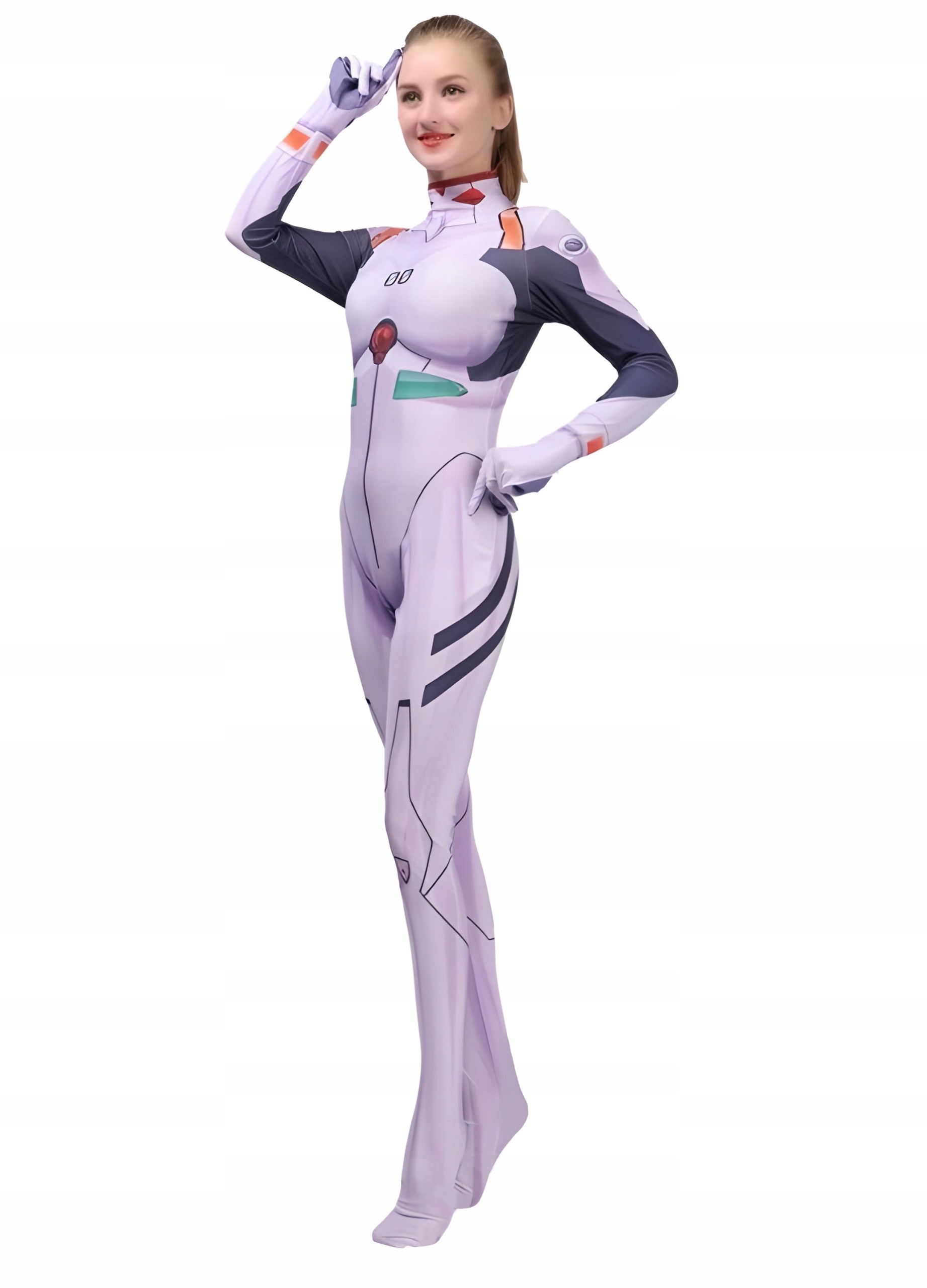 Цельный костюм Рей Аянами белого цвета с черными элементами. Хорошо сшит, слегка эластичен, застегивается на молнию. Благодаря нашему предложению вы станете пилотом Евангелиона-00.