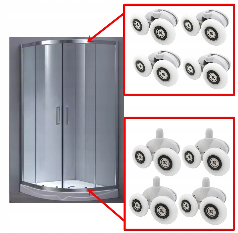 Комплект роликов для верхних и нижних душевых дверей, 23мм, 8 шт.