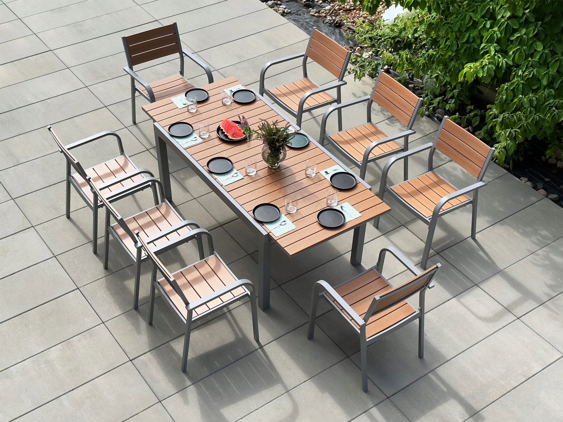 Нам удалось создать идеальный комплект для улицы, чтобы вы могли наслаждаться лучшими солнечными днями прямо из своего сада или террасы. . Набор из прямоугольного раздвижного стола (150/200 см) и 8 садовых стульев преобразит ваше пространство, придав индивидуальность и оригинальность.