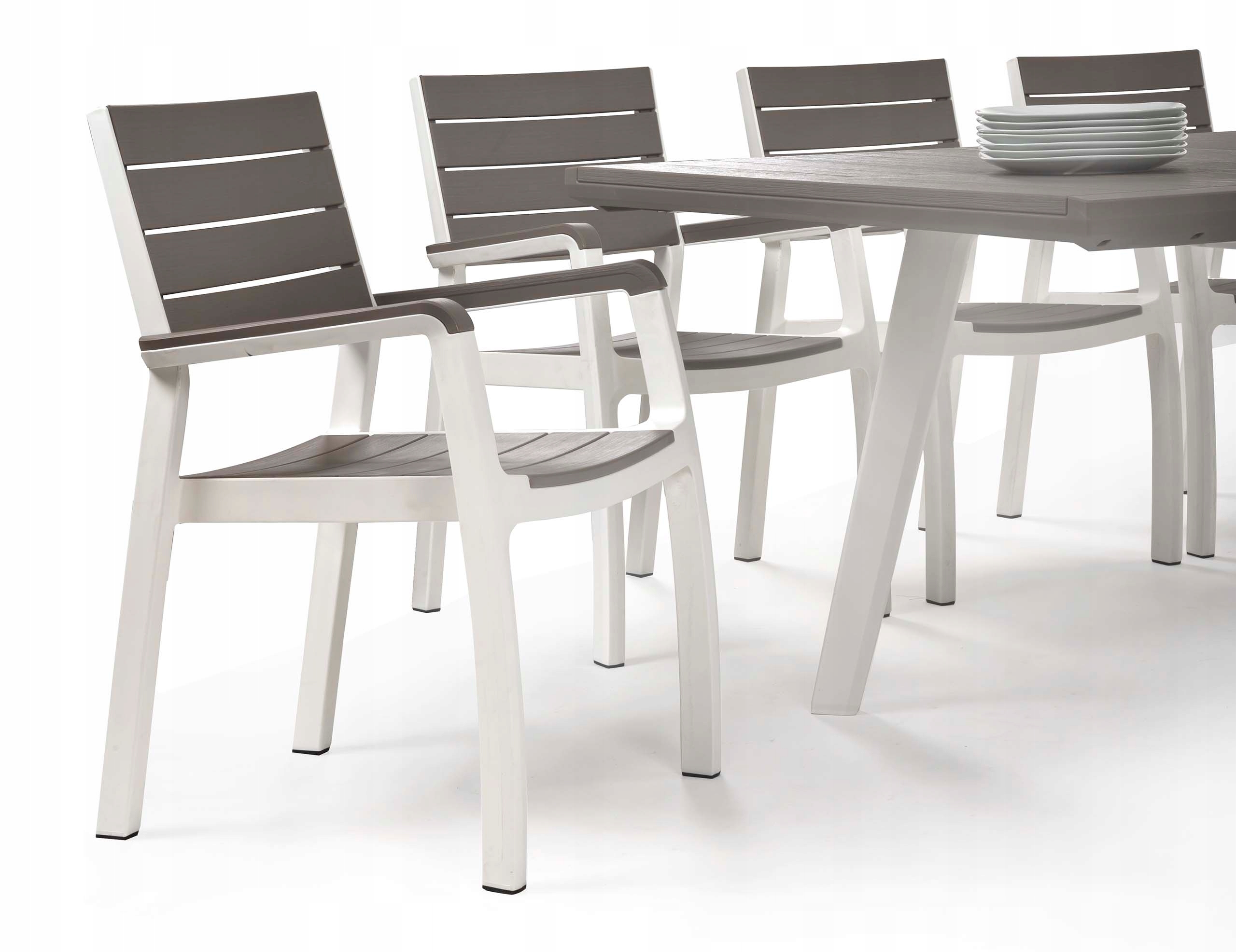 Стильный и уникальный комплект мебели HARMONY 6+1 понравится всем, кто любит застолье на природе. Изделие сочетает в себе внешний вид деревянного набора с практической пользой использования пластика. Комплект отличается высокой устойчивостью к длительным погодным условиям. Очень легко содержать в чистоте, легко собирать.