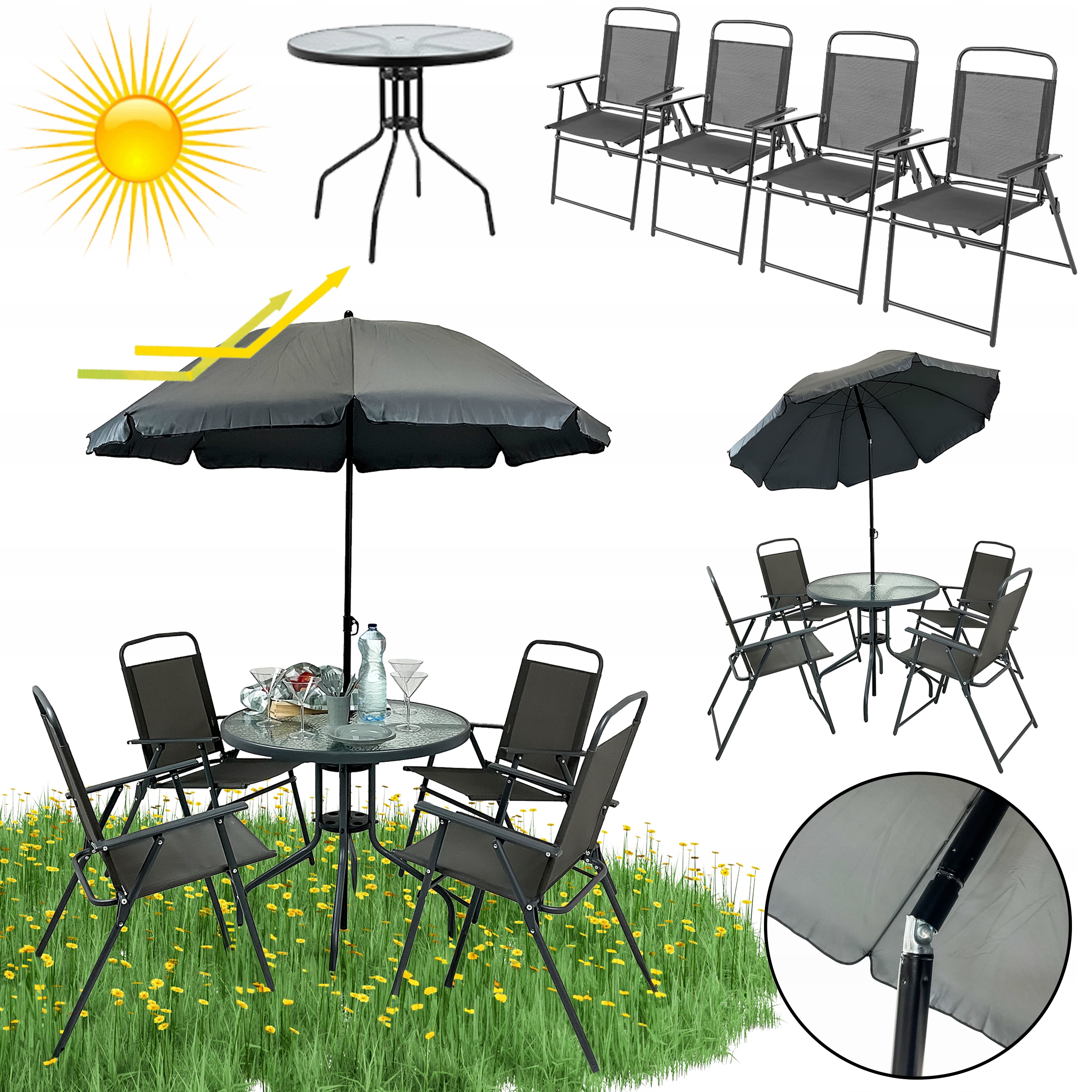 КОМПЛЕКТ САДОВИХ МЕБЛІВ БАЛКОН САД ТЕРАСА СТІЛ ПАРАСОЛЬКА ЧІЛІ 4 МІСЦЯ СІРИЙ
