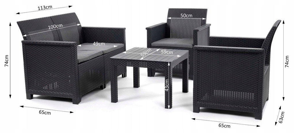 Материал, из которого изготовлена мебель, на 100% устойчив к влаге и УФ-излучению. Нет опасений, что комплект поменяет цвет или потускнеет. Мебель можно оставлять на улице круглый год. Закрепить нужно только подушки.