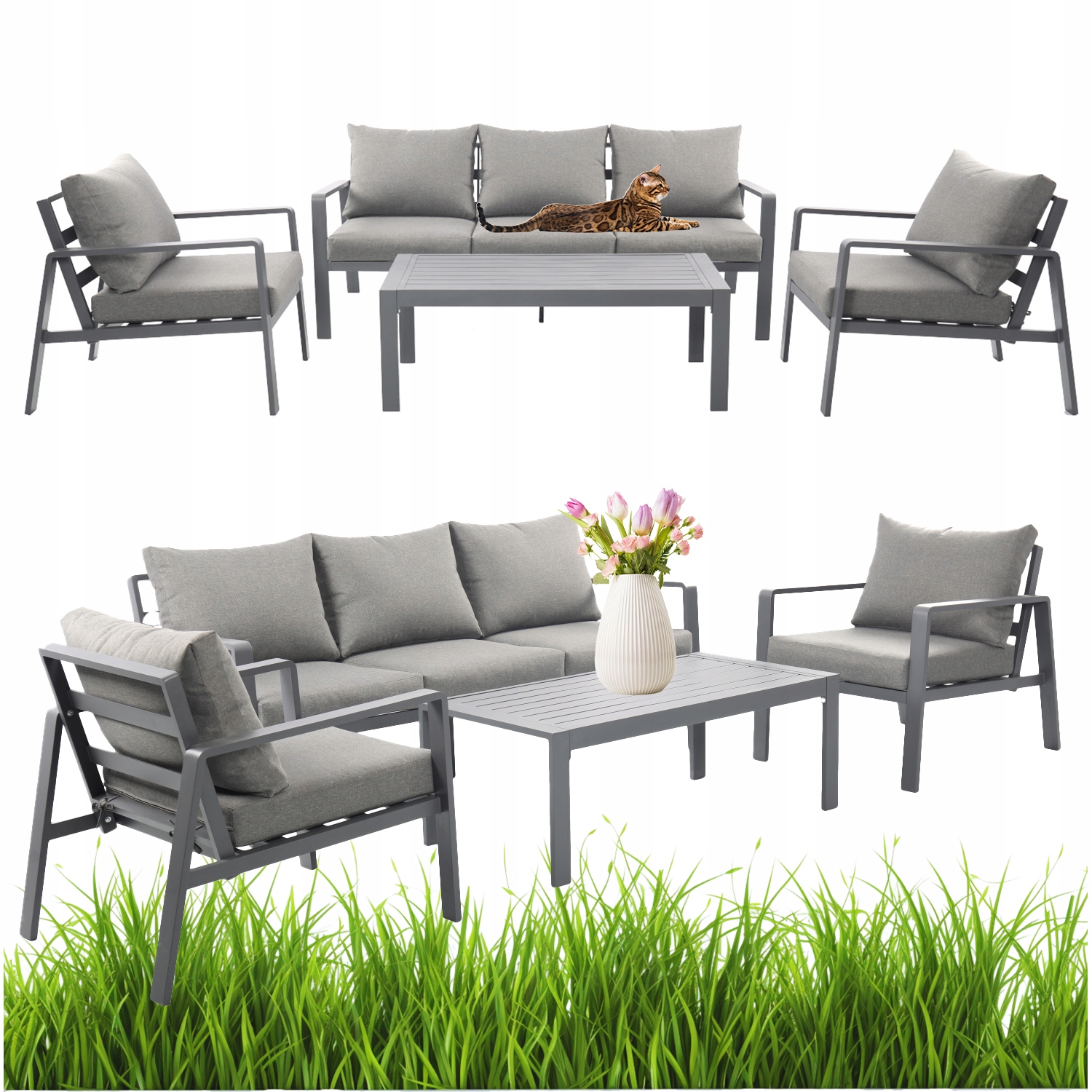 КОМПЛЕКТ САДОВОЙ МЕБЕЛИ МЕБЕЛЬ ДЛЯ ТЕРРАСЫ СЕРЫЙ ДИВАН ЖУРНАЛЬНЫЙ СТОЛИК 2 СТУЛА
