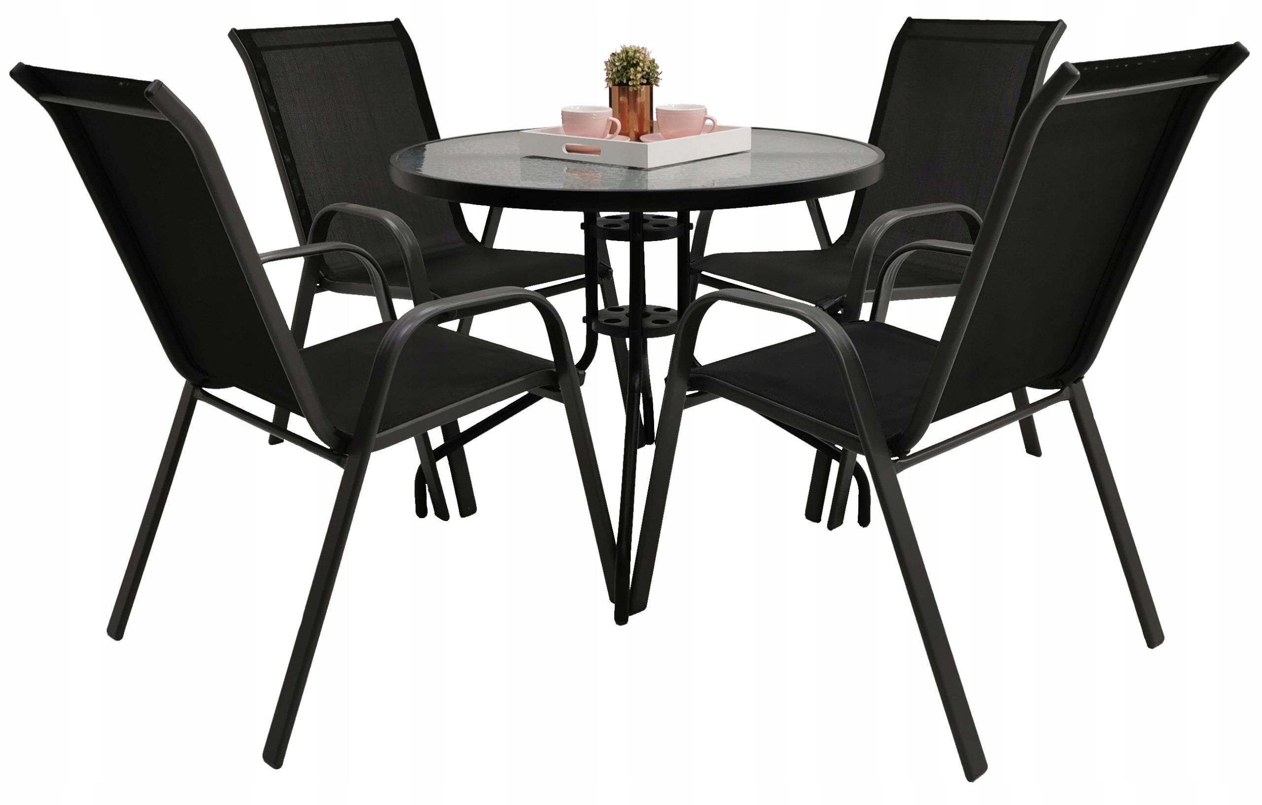 4x стул МИНОРКА ЧЕРНЫЙ + стол fi90