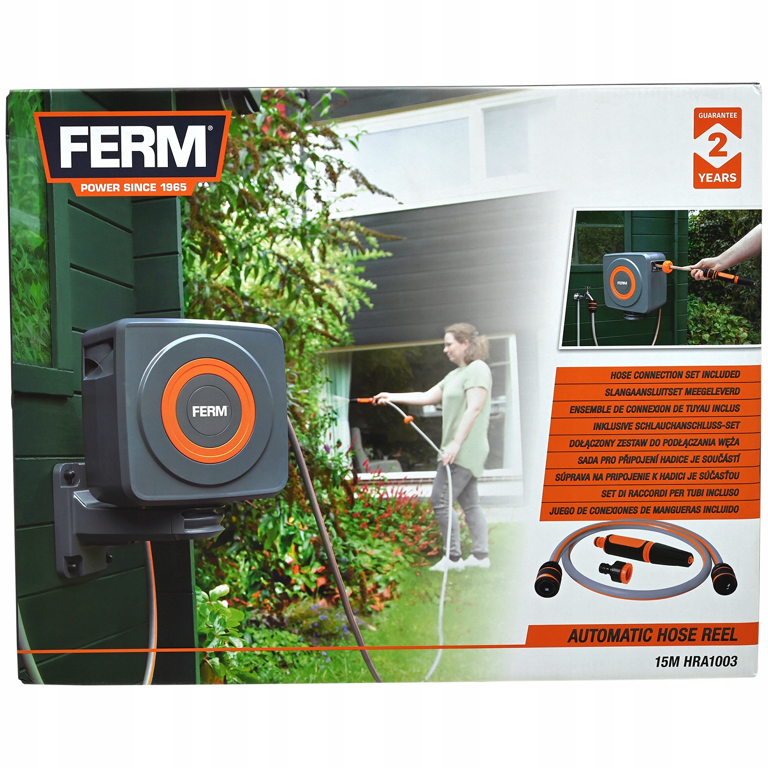 С катушкой для шланга FERM HRA1003 поливать газон, поливать растения, мыть машину или наполнять бассейн становится очень легко и приятно! Частично это благодаря входящему в комплект 15-метровому садовому шлангу. Шланг легко сворачивается и разматывается благодаря автоматическому механизму.