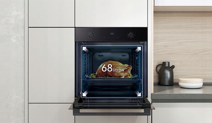 Выпекайте более равномерно и гибко, а духовку очищайте без лишней работы. Конвекция обеспечивает постоянную, равномерную температуру во всех уголках устройства, благодаря чему еда готовится эффективно. Благодаря системе самоочистки внутренняя часть духовки остается чистой. А благодаря вместимости до 68 литров вы можете готовить блюда большего размера или даже больше.