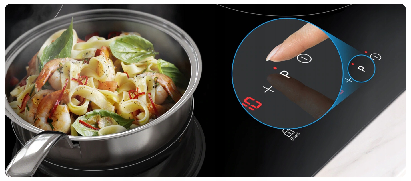 С функцией Power Boost вы сэкономите время и быстрее приготовите идеальные блюда. После активации на срок до 5 минут подает дополнительную мощность на каждую зону нагрева, увеличивая температуру нагрева. Теперь вы можете легко и быстрее вскипятить воду или разогреть большую кастрюлю супа.