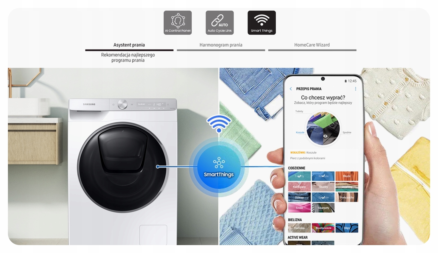Легкая, удобная и эффективная стирка благодаря интеллектуальной панели управления AI. Оно позволяет персонализировать настройки стиральной машины, запоминает предпочтения пользователя и предлагает программы сушки в зависимости от выбранной программы стирки. Кроме того, приложение SmartThings позволяет удаленно включать стиральную машину, облегчает планирование стирки и подсказывает пути решения проблем.