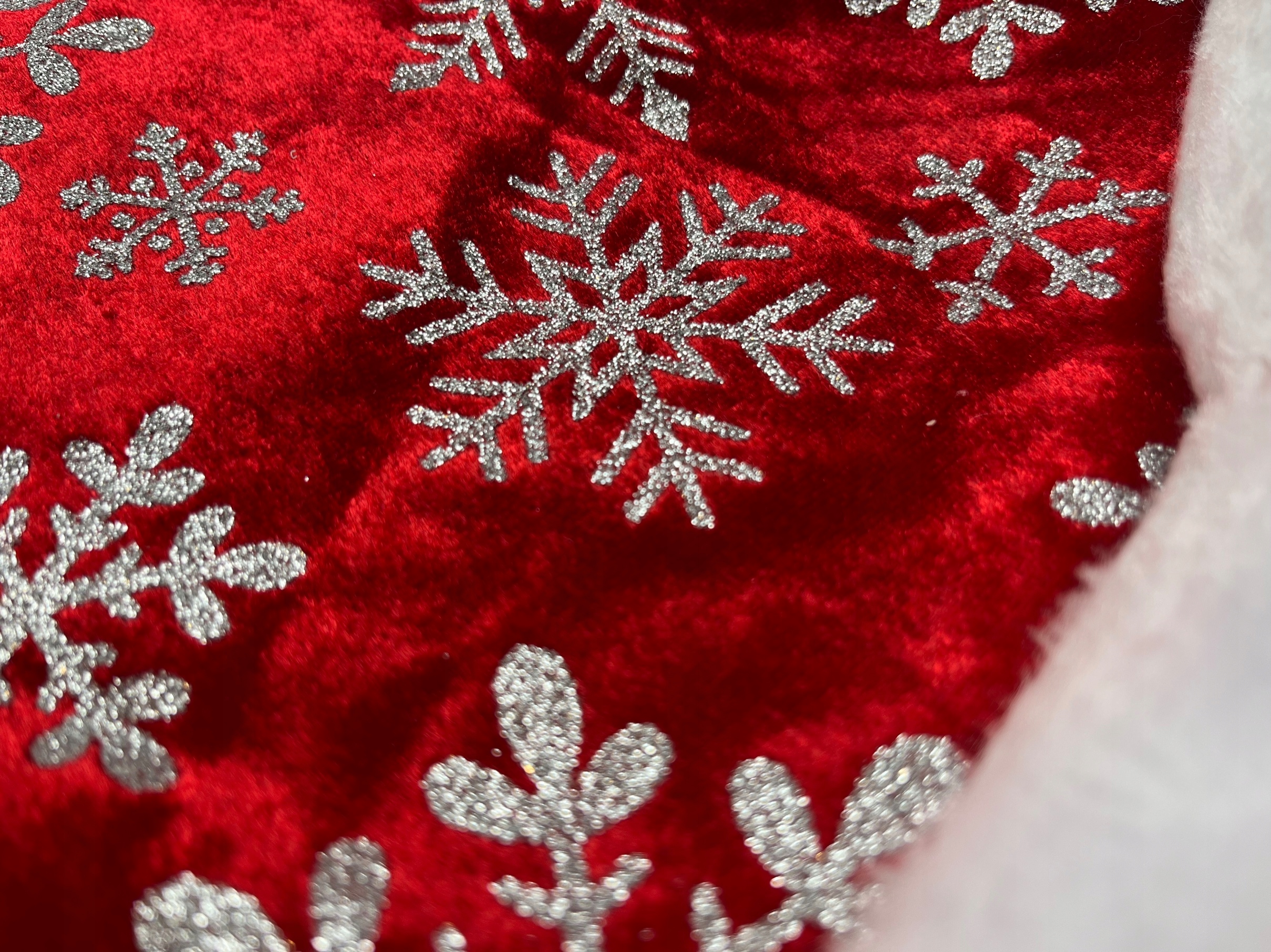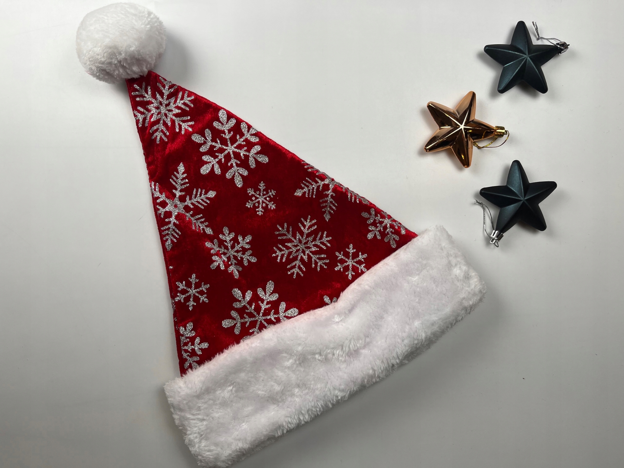 - Рождественский набор от ST. ВЫБОР НИКА. Набор состоит из шапки Санты и подарочного чулка. Шапка Санты изготовлена из красно-белого бархата и украшена красивыми снежинками с серебристыми блестками. Носок также выполнен из бархата красного и белого цветов.