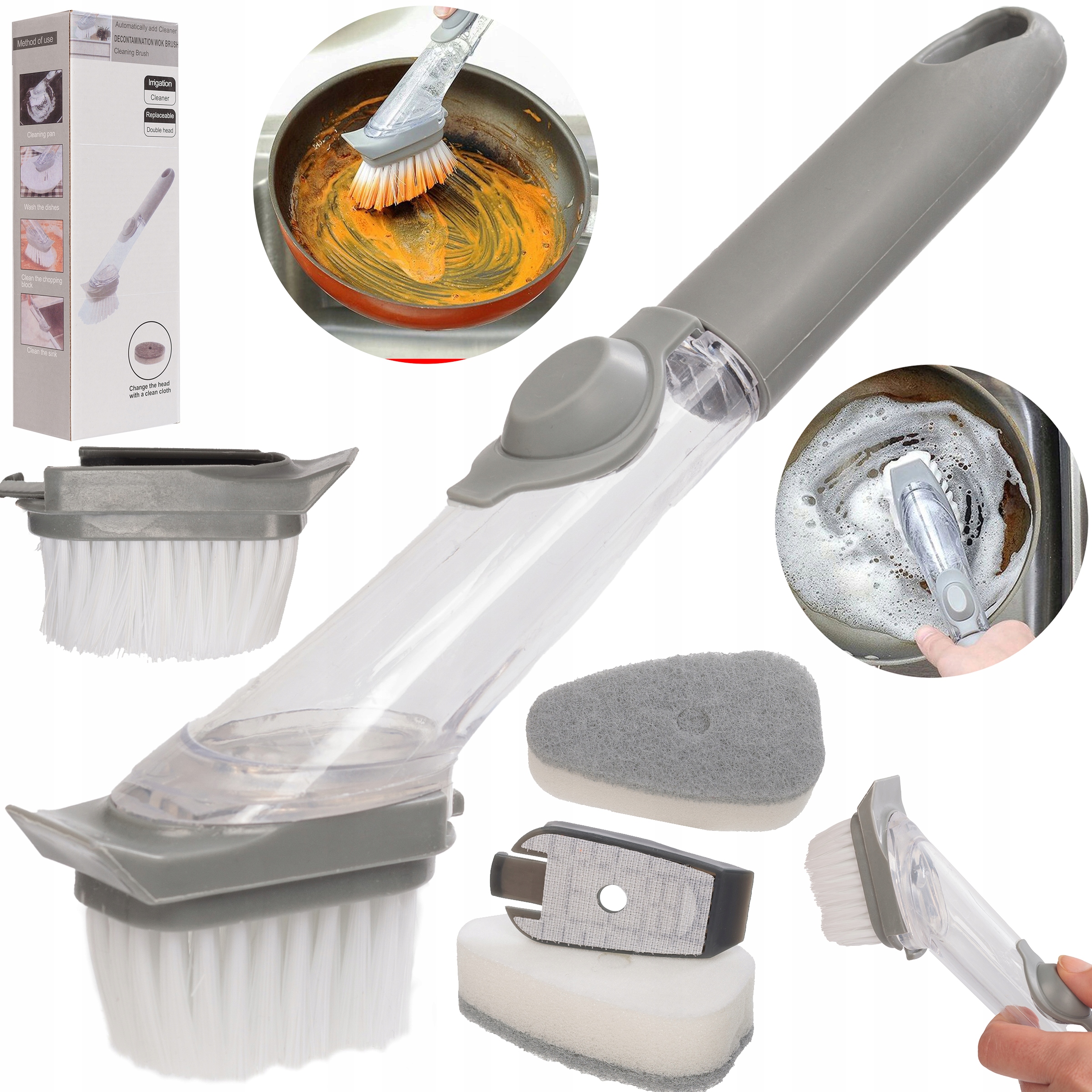 Набор ручек, чистящая подушечка, губка, щетка, диспенсер, скребок для посуды, домашний инструмент для мытья посуды.