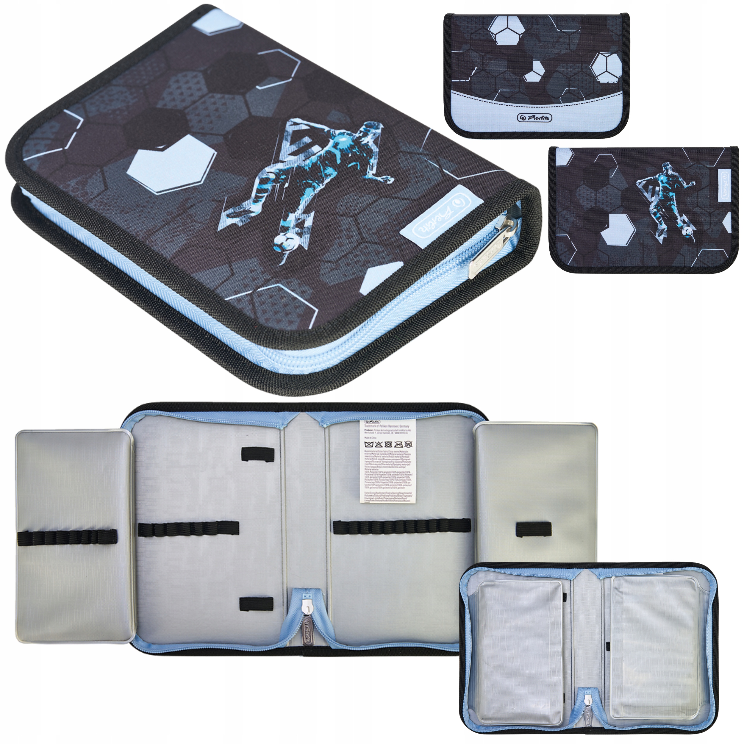 Комплект Herlitz Loop Plus в динамичном узоре Cyber Soccer – идеальный вариант для ученика 1-3 классов, который любит футбол. В комплект входит легкая школьная сумка с футболистом, складной пенал без аксессуаров, тубус для аксессуаров и сумка - все в сочетающемся современном стиле, вдохновленном спортом.