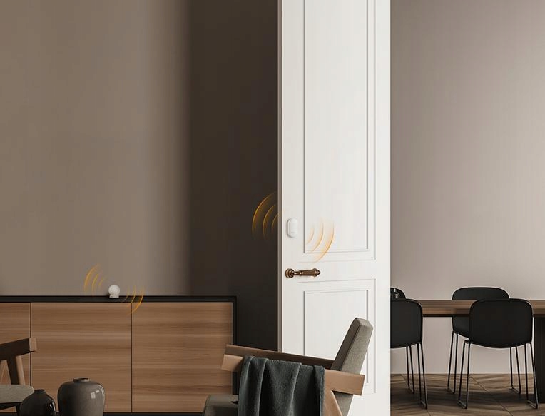 Датчик двери и окна может контролировать открытие/закрытие дверей, окон, дверей шкафа, ящиков. Когда магнит отделен от датчика на определенное расстояние, он может вовремя уведомить шлюз через беспроводные сигналы для обеспечения сигнализации и другой интеллектуальной ассоциации сцены.