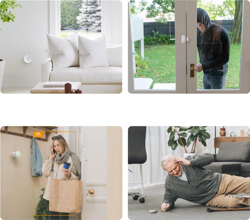 Датчик движения улавливает инфракрасный свет, излучаемый телом человека через объектив, тем самым обнаруживая присутствие живого тела. Он по-прежнему может работать даже в темноте, генерирует низкий трафик данных, не вторгается в личную жизнь пользователя, имеет низкое энергопотребление, длительное время работы в режиме ожидания и прост в установке. Вы можете разместить его на столе или повесить на стену. Он может эффективно обнаруживать информацию о вторжении и генерировать экстренный вызов.