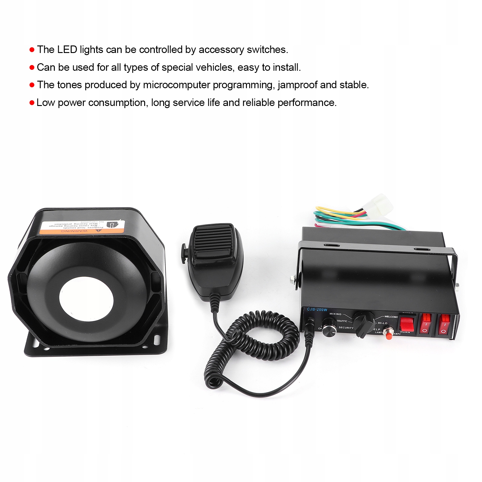 Комплект сирены, 200 Вт, динамик, 12 В постоянного тока, 8 тонов, 130 дБ, громкий звук, 2 светодиодные лампы, универсальный интерфейс для транспортных средств