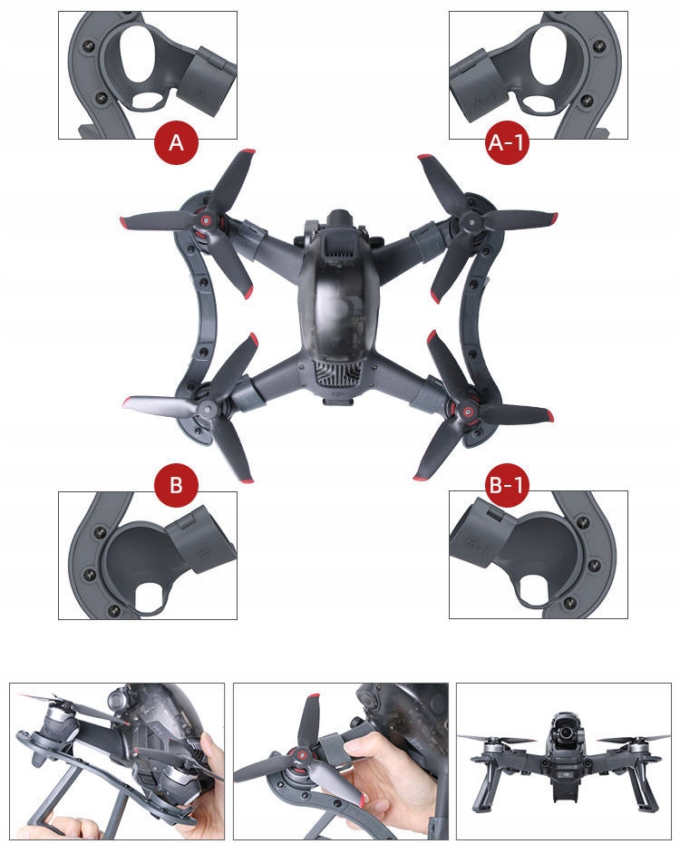 Благодаря этому ножки устойчиво прилегают к базе дрона и идеально подходят даже для самых сложных условий.