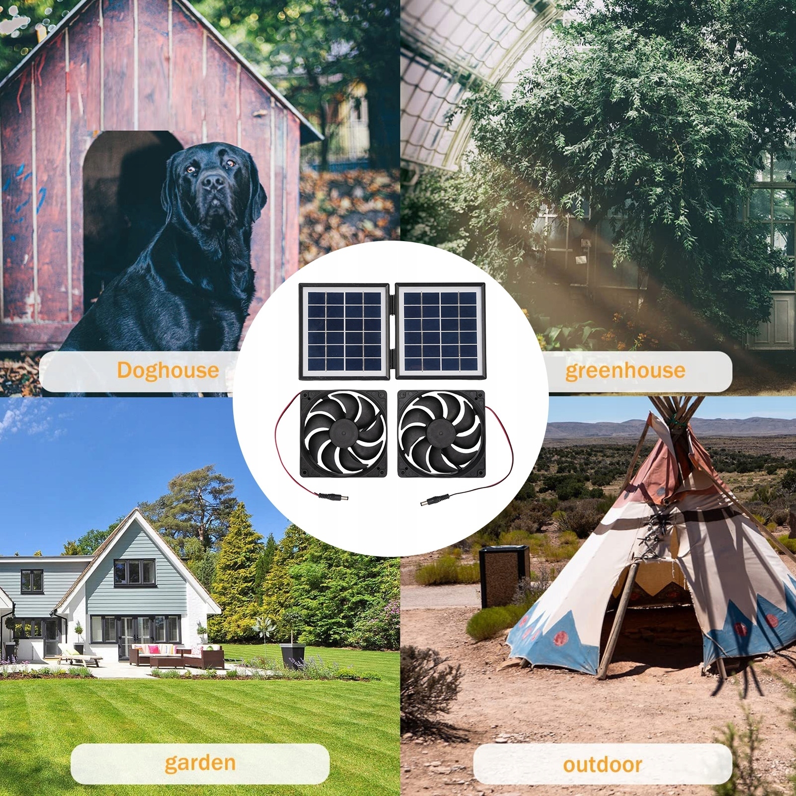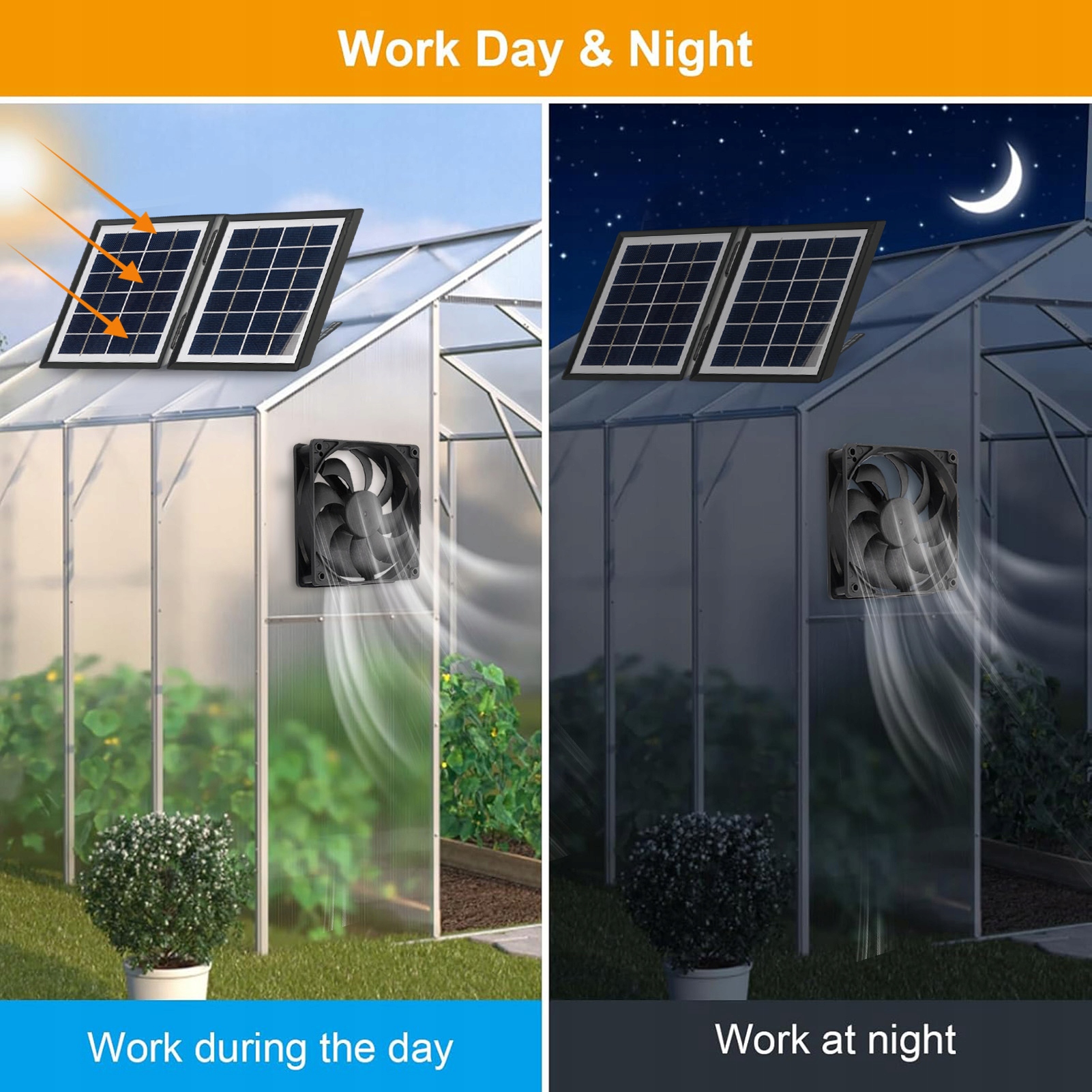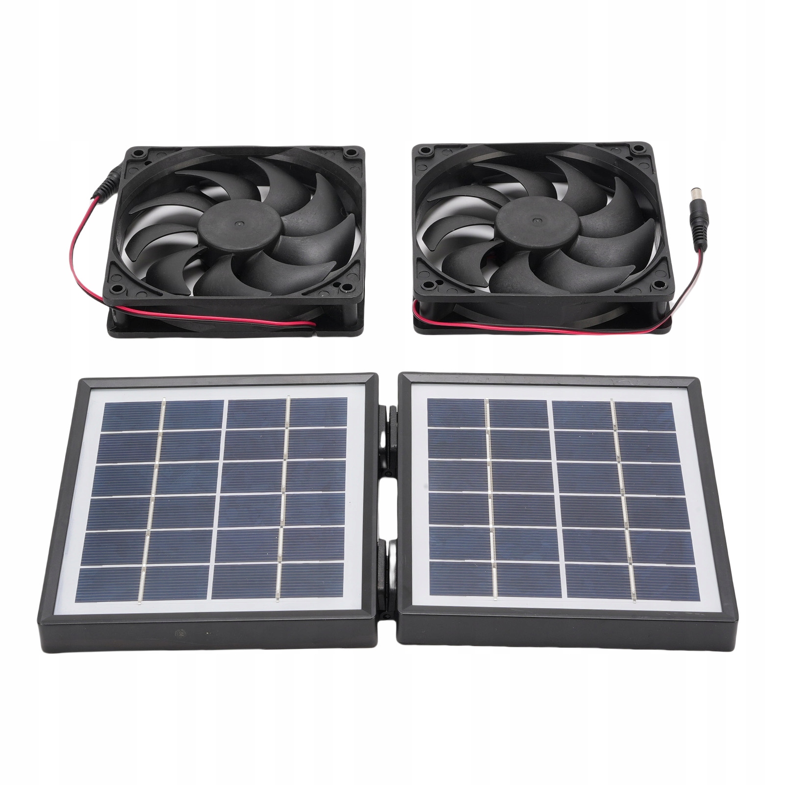 Особенность:1. Мощный воздушный поток: в комплект входят два модернизированных солнечных вентилятора с более толстыми и широкими лопастями, которые создают мощный воздушный поток. Эта мощная циркуляция помогает улучшить циркуляцию воздуха и создать более прохладную среду в небольших помещениях.
