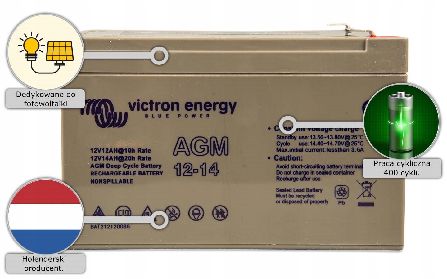 Victron Energy — всемирно известная компания, предлагающая широкий спектр фотоэлектрических решений на базе батарей. Он славится своим высоким качеством и является эталоном в мире стандартов качества аккумуляторов и фотоэлектрических устройств. Серия аккумуляторов AGM Deep Cycle обеспечивает беспрецедентную устойчивость к глубоким разрядам и регулярную циклическую работу, например, в фотоэлектрических системах. Благодаря использованию материалов высочайшей чистоты и кальциево-свинцовых сеток батареи Victron Energy AGM гарантируют низкий саморазряд и высокую долговечность. Аккумуляторы соответствуют спецификациям CE и UL и помещены в огнестойкие контейнеры из АБС-пластика.