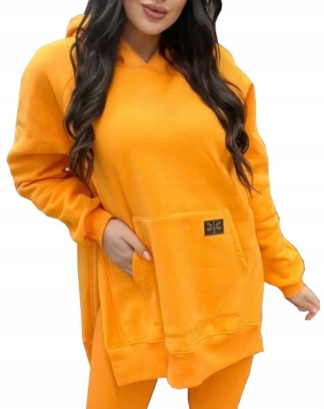 Асимметричный свитшот, туника, куртка-кенгуру с капюшоном, отличающаяся разрезами по бокам, в сочетании с леггинсами в рубчик.