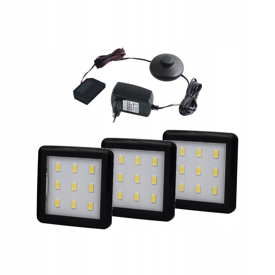 Светильники под шкаф светодиодные - 3-точечный комплект SQUARE3 с проводкой