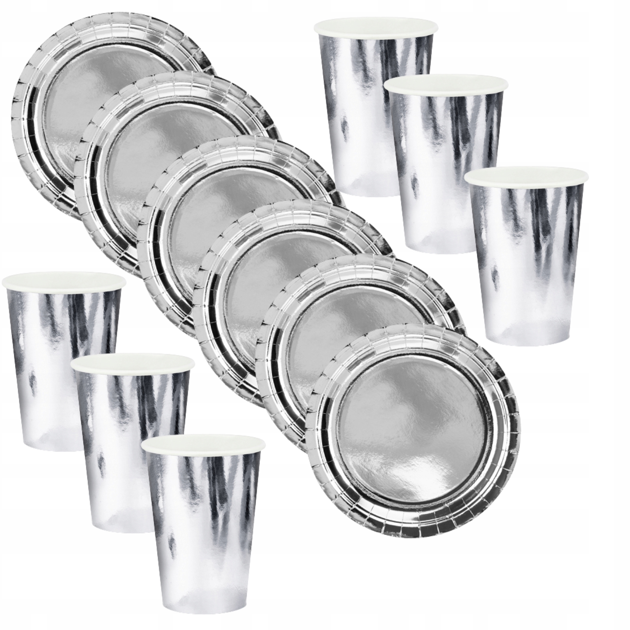 Комплект срібні тарілки, одноразові паперові стаканчики - 12 елементів