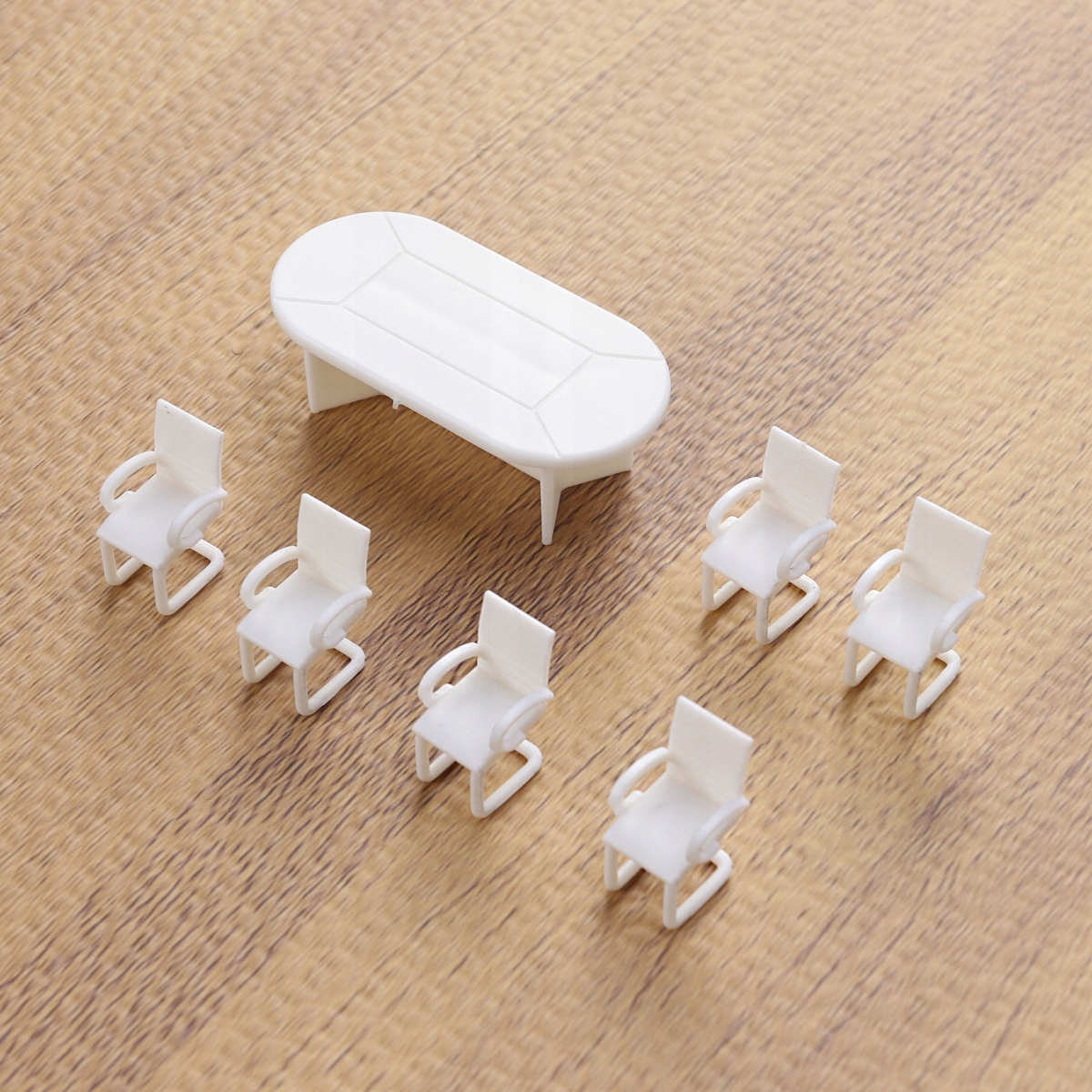 Описание Это модель сцены для встреч, включающая 1 стол для переговоров и 6 стульев для встреч. Наш мини-продукт выполнен очень качественно, в миниатюрном масштабе примерно 1:50. Он сделан из. Стол и стулья изящные и милые, их будет интересно использовать для сцены встречи своими руками. И это может быть украшением вашего офиса или других мест, которые вы хотите разместить.