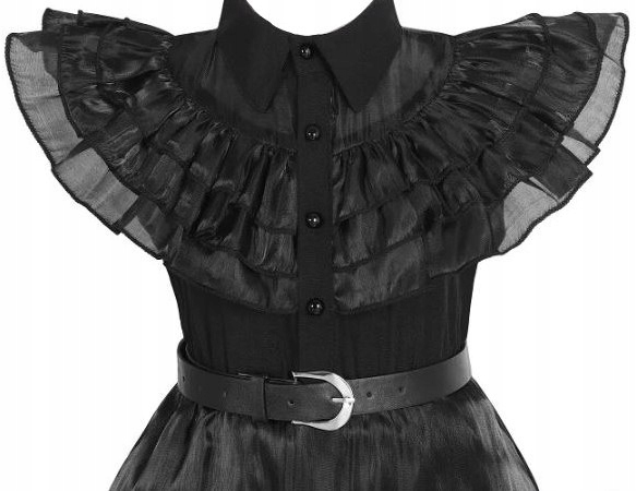 Погрузитесь в уникальный стиль культовой героини Уэнсдей с этим уникальным платьем, вдохновленным ее фирменным нарядом. Наряд отлично подойдет для карнавального бала, дня рождения или тематической вечеринки.