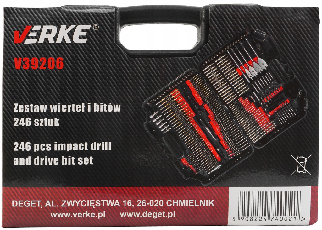 Набор аксессуаров, состоящий из всего 246 удобных элементов, позволит выполнять разнообразные работы. В комплект входят сверла по дереву, сверла по металлу, сверла по бетону, сверла, перьевые сверла, кольцевые пилы, биты, шестигранные головки, зенковка, шестигранный ключ, адаптеры. Все поместилось в прочный чемодан, благодаря чему хранение и транспортировка такого большого набора не вызовет никаких проблем. Каждому аксессуару отведено определенное место в чемодане, что позволяет легко поддерживать его в порядке. Изготовлен из быстрорежущей стали HSS.