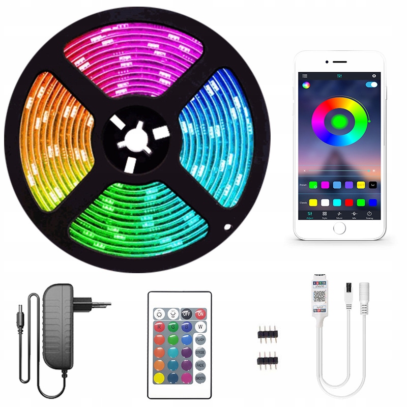 Светодиодная лента RGB 5050 - 10 метров с мобильным приложением Tuya Smart Life, поддерживаемым смартфоном, светодиодный контроллер, пульт дистанционного управления, блок питания и необходимые аксессуары