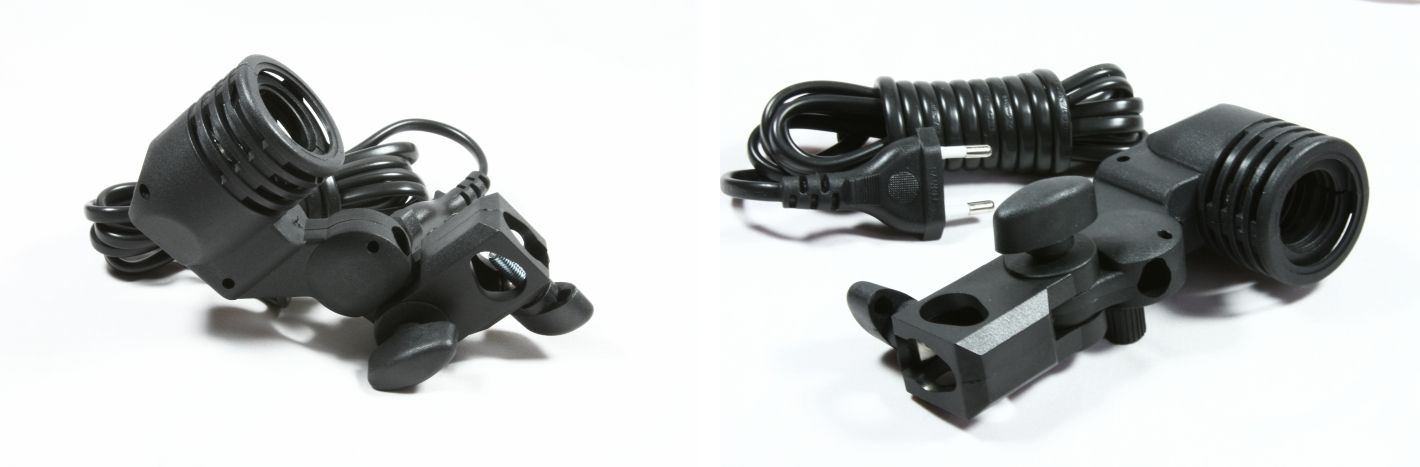 Патрон позволяет прикрепить одну лампочку/люминесцентную лампу/лампу-вспышку. Крепежные элементы имеют стандартную резьбу Е27.