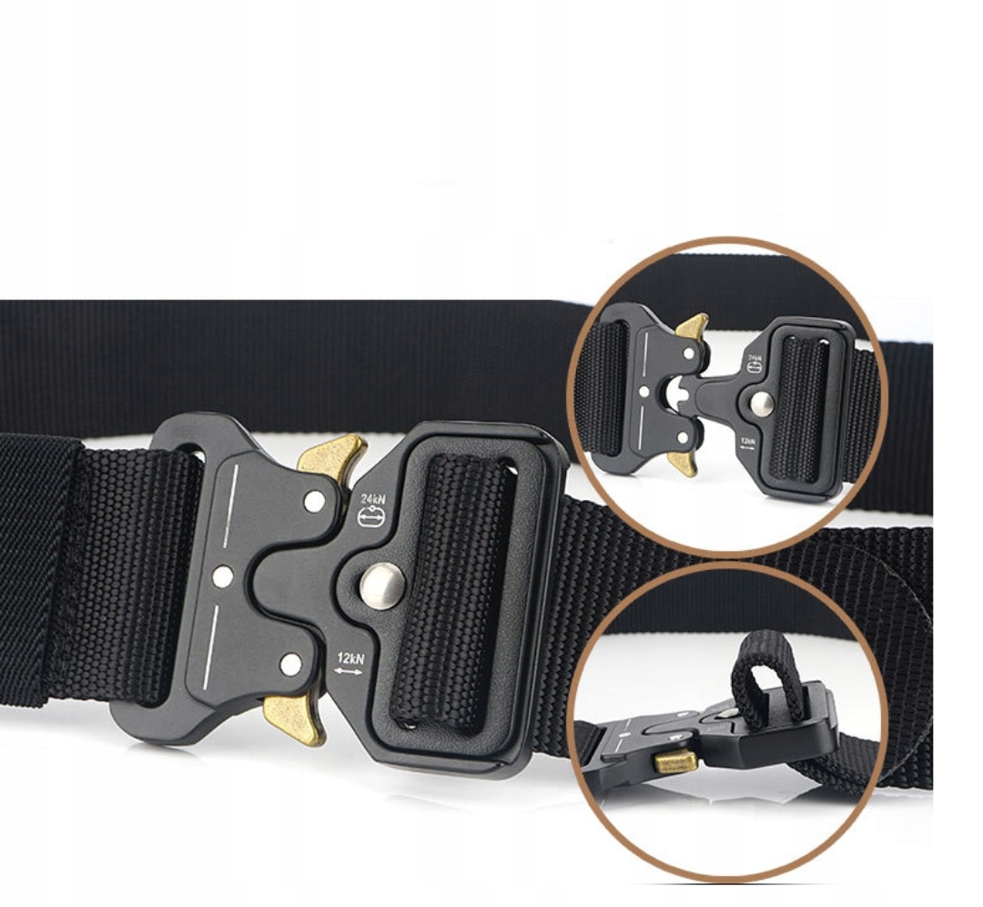 Пряжка с зажимом и замком изготовлена из очень прочного металла, что делает ее устойчивой к повреждениям. Запирающая система очень проста в использовании и обеспечивает прочное, долговечное крепление и защищает от случайного открытия. Ремень открывается одним щелчком. Обеспечивает быстрое застегивание или снятие ремня в экстренной ситуации.
