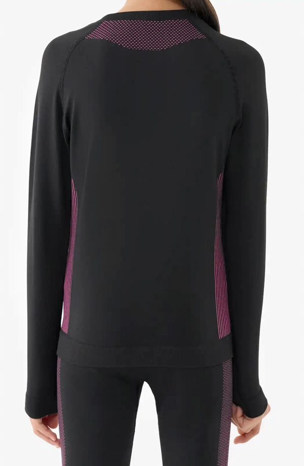 Быстросохнущее покрытие эффективно отводит влагу, поэтому кожа остается сухой даже во время интенсивных тренировок. Бесшовная конструкция минимизирует риск потертостей, а узкий крой подчеркивает фигуру и поддерживает термосбережение.
