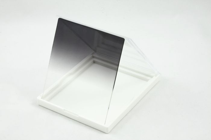 Фильтр имеет градиентный цвет. Серая часть фильтра имеет коэффициент серого NDx4 (две апертуры).