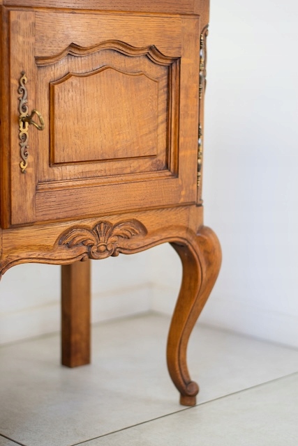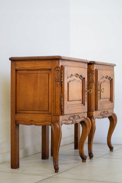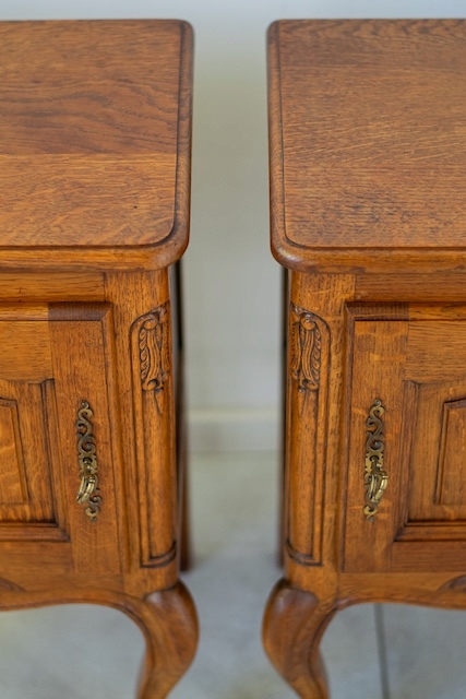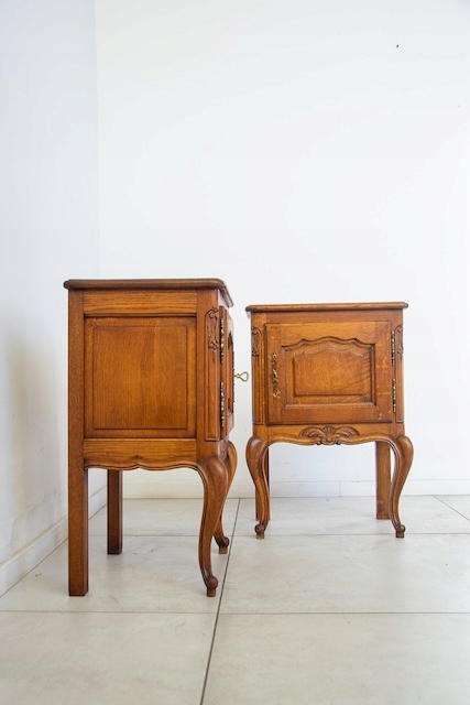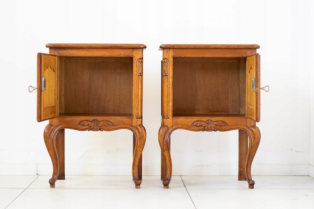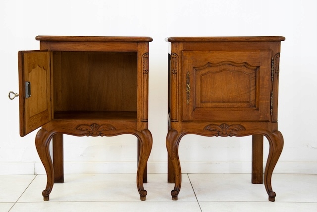 Прикроватные тумбочки в стиле Людвик. Они изготовлены из древесины дуба. Очень хорошо. Оба запираются. Они в хорошем состоянии. У них нет повреждений. На них видны типичные следы использования. Внутри они хорошо сохранились. Готово к вставке.