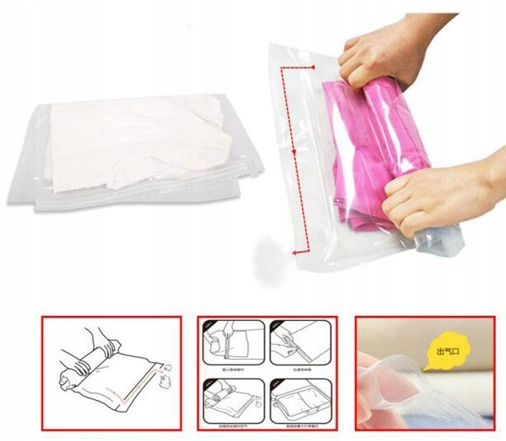 Идеальное решение для всех, кто собирается в путешествие на отдых, каникулы и т. д. Спасибо для них объем багажного отделения увеличен втрое. Мы экономим много места в чемодане, сумке или рюкзаке. Мешки изготовлены из прочного ПВХ.