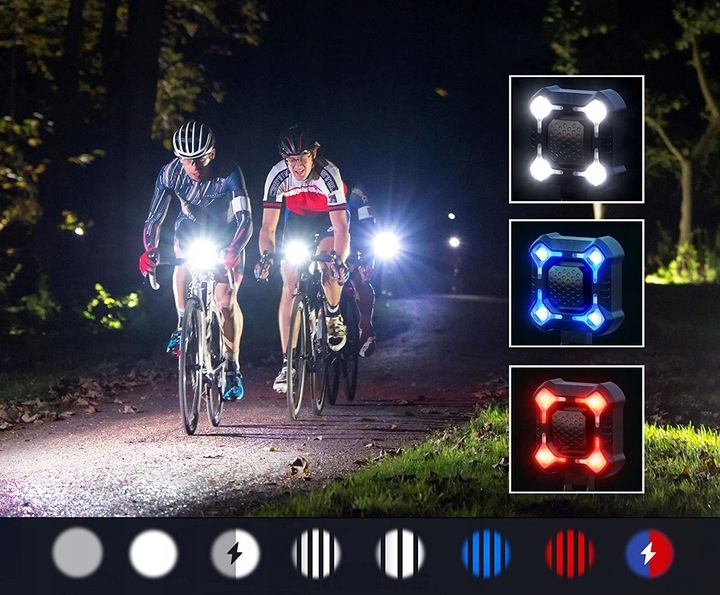- 8 мод освещения: белый свет, сильный белый свет, волнистый белый свет, соус, мигающий белый свет, мигающий синий свет, мигающий красный свет, мигающий красный и синий свет