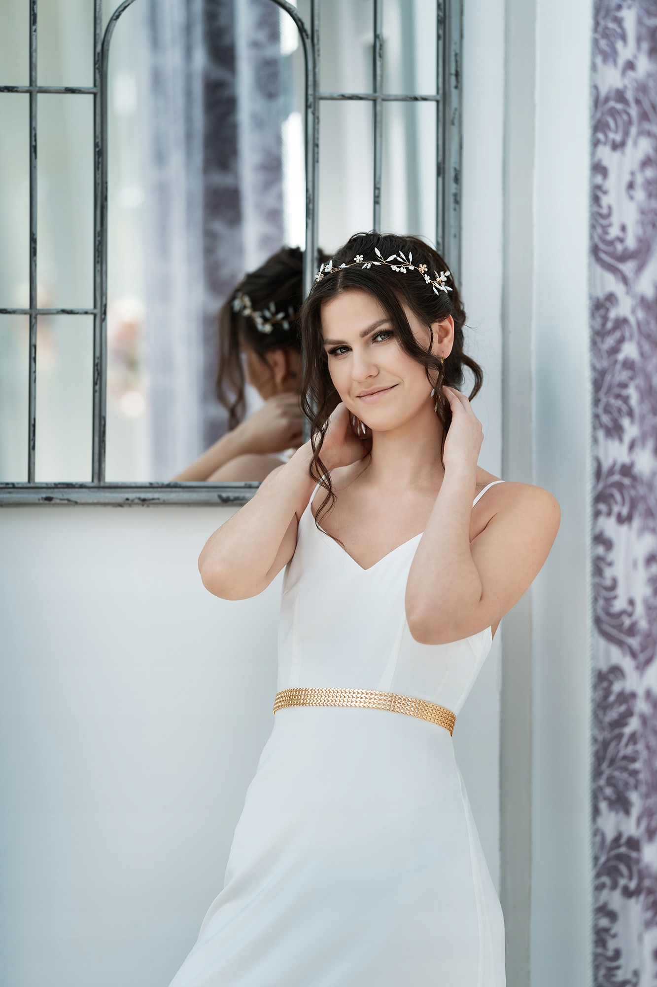 Декоративный венок и серьги с растительным мотивом
