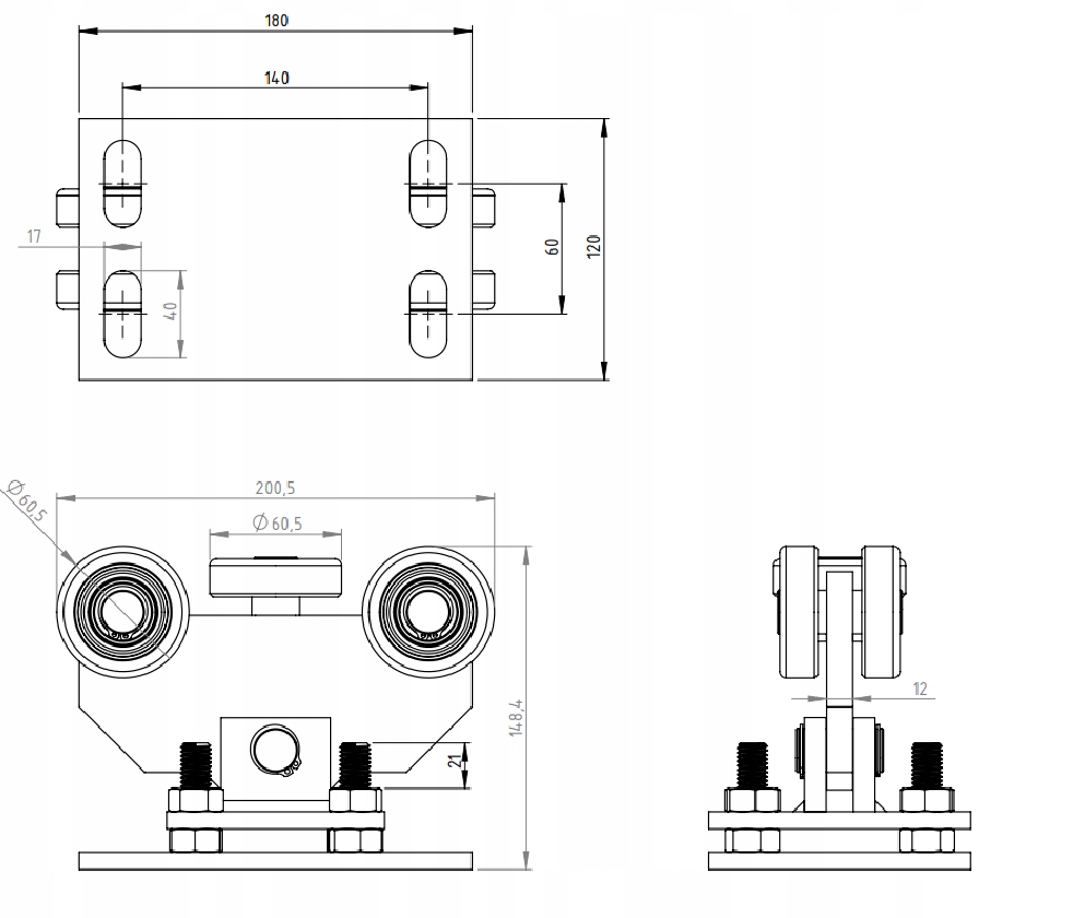 Все тележки защищены от коррозии гальваническим цинком (серебром), обеспечивающим длительную эксплуатацию. Наши тележки доступны в самых популярных вариантах для профилей 50х50х3 мм, 60х60х3 мм, 70х70х4 мм и 80х80х5 мм: