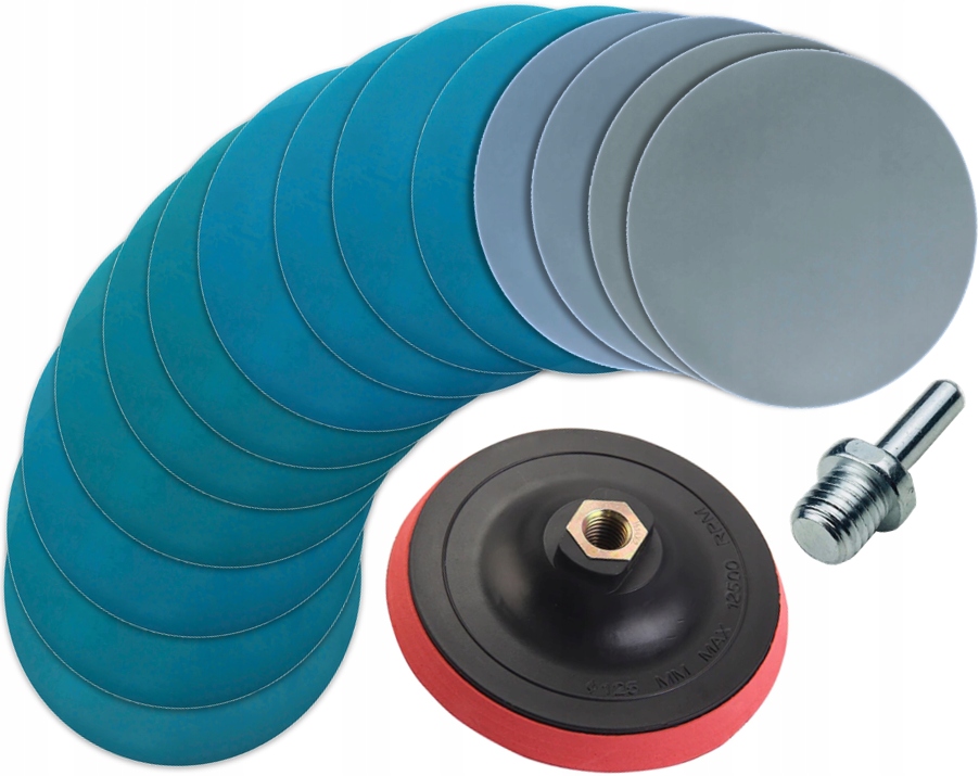 НАБОР ВОДНЫХ АБРАЗИВНЫХ ДИСКОВ С КРЕПЛЕНИЕМ НА ЛИПУЧКЕ 125 мм
